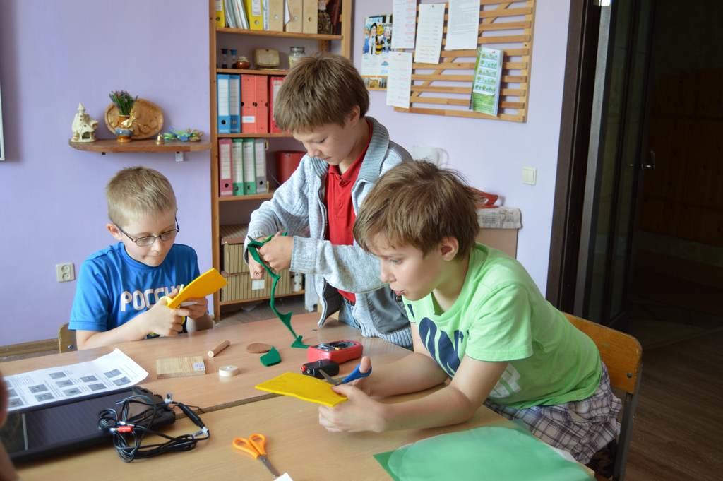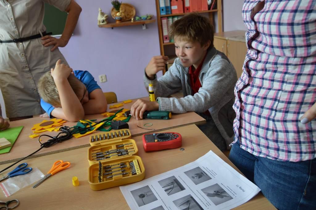 Дождливым субботним утром ребята собрались, чтобы под руководством педагогов смастерить игрушечную модель цветка подсолнечника, которая могла бы вращаться от солнечной батареи. Учителя иностранного языка Юлия Старых и Лариса Терехова рассказали ребятам о проводимой акции, вместе они отправились в путешествие по карте мира, отыскивая единомышленников - участников мероприятия.