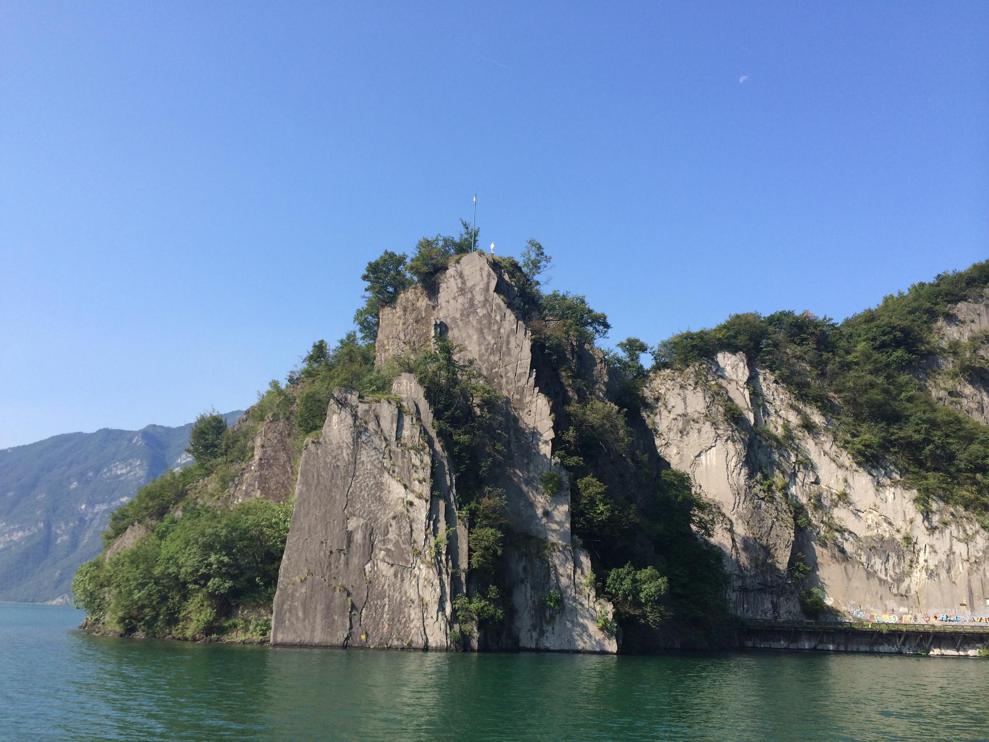 Билет в зависимости от расстояния стоит от 2.20 до 6.70 евро. Этот способ передвижения, возможно, не такой быстрый, зато очень приятный. А что еще нужно для хорошего отдыха? Ветер в волосах, приятный аромат гор и озера, солнце, звук плещущейся воды и приятная компания. Хочешь загорай, хочешь фотографируй, хочешь устрой себе пикник на задней палубе. Таким образом, можно неспеша приплыть к острову Монте Изола.