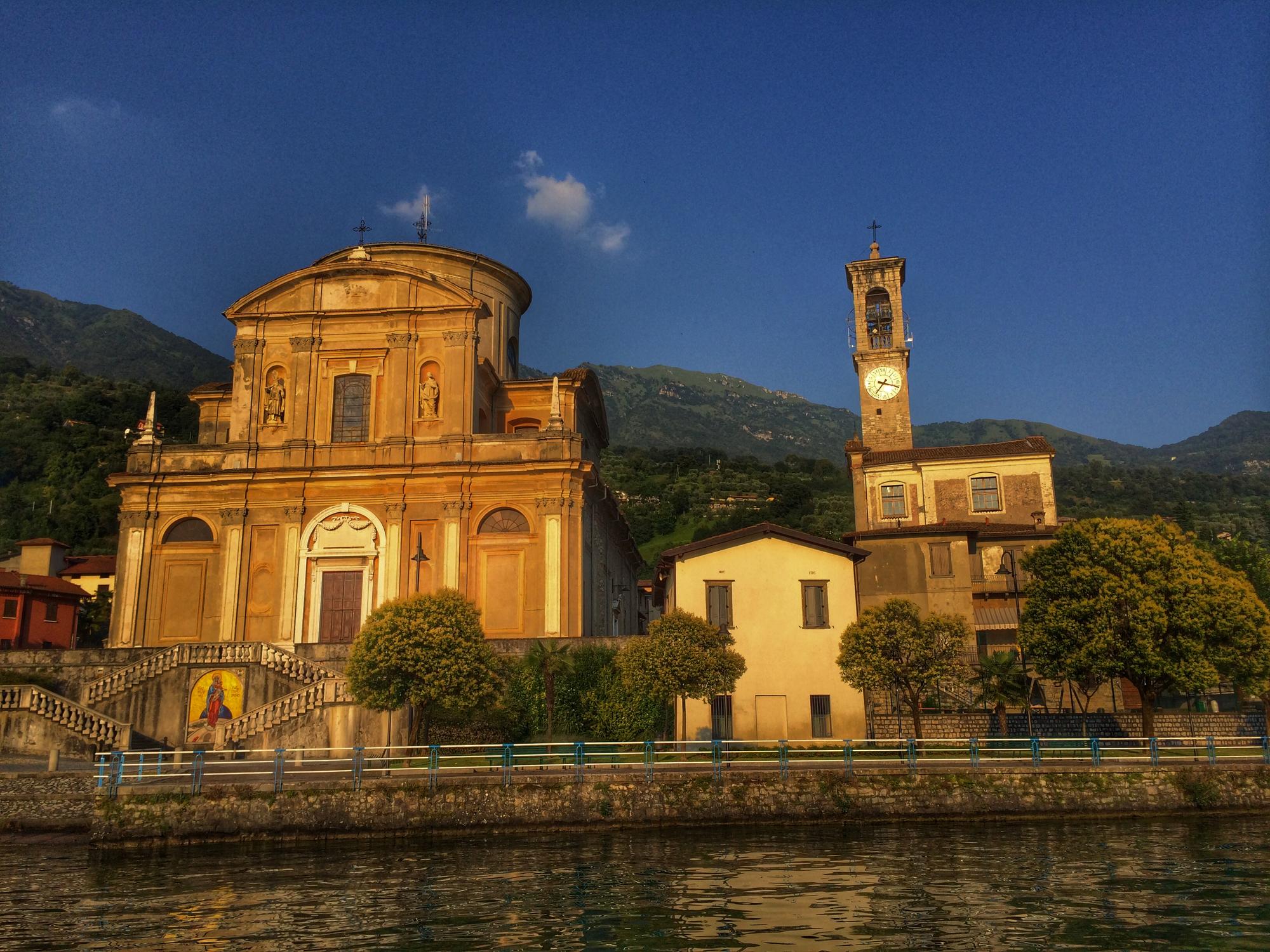 Добраться до Изео совсем не сложно, как может показаться на первый взгляд. Можно взять в аренду авто, и доехать по навигатору, а можно погрузиться в активную романтику и воспользоваться поездами. Последние, благо, в Италии очень распространены – со знаменитой компанией Trenitalia возможно даже кто-то знаком. Так вот, из Милана надо добраться до городка Брешии – этого около 1 часа езды и 20 евро в комфортабельном вагоне первого класса экспресса Freccibianca, а из Брешии - уже до одной из деревень озера на местном кондиционированном поезде, больше похожим на состав метро. Наш выбор пал на самую дальнюю деревушку этой местности под названием Пизонье (Pisogne). Так что на дорогу к ней надо заложить еще около часа пути по живописнейшим местам по берегу озера, тоннелям, горам и 5 евро в один конец. Вообще, Пизонье – это деревня с очень небольшим количеством жителей. Однако летом население становится больше раза в полтора за счет приезжающих сюда отдыхающих итальянцев. Немного картину разбавляют немцы, и совсем чуть-чуть - англичане. Большой променад вдоль озера, раскрашенный клумбами ярких красных и розовых цветов, и запарфюмированный ароматами великолепной лаванды, небольшая площадь со средневековой башней, невероятный по красоте храм на горе, пляж – бесплатный и платный, причал для катеров, железнодорожная станция и c десяток кафе и различных trattoria, gelateria, баров и т.д. В общем то, вокруг этого и вертится жизнь отдыхающих на озере – ничего особенного, но все по-итальянски. Днем – актив в виде утренних пробежек по набережной, прогулок на катере, купание, походы в горы, поездки на велосипедах в близлежащие городки, вечером – расслабленная dolcevita с аперитивом и всевозможными закусками.