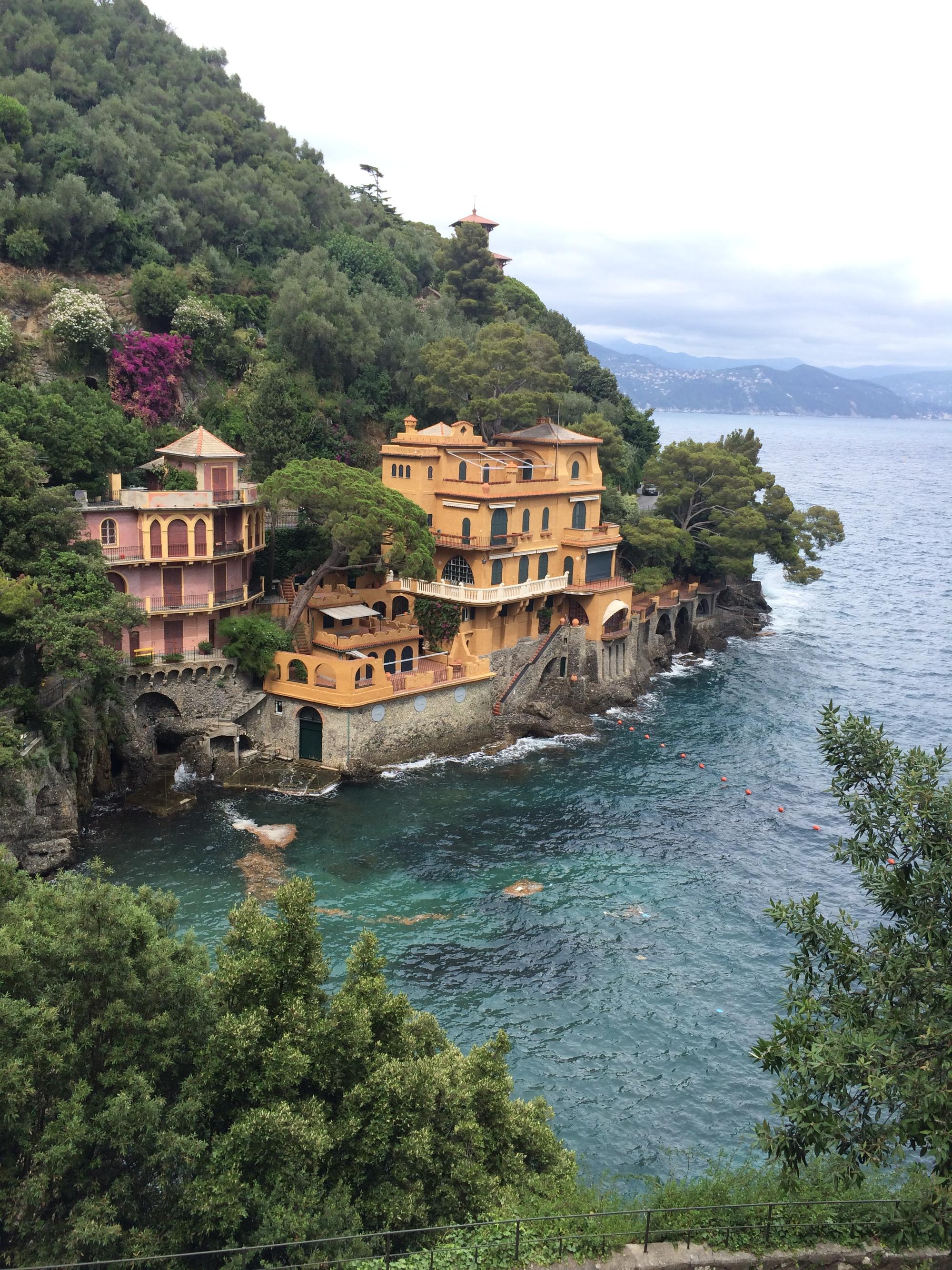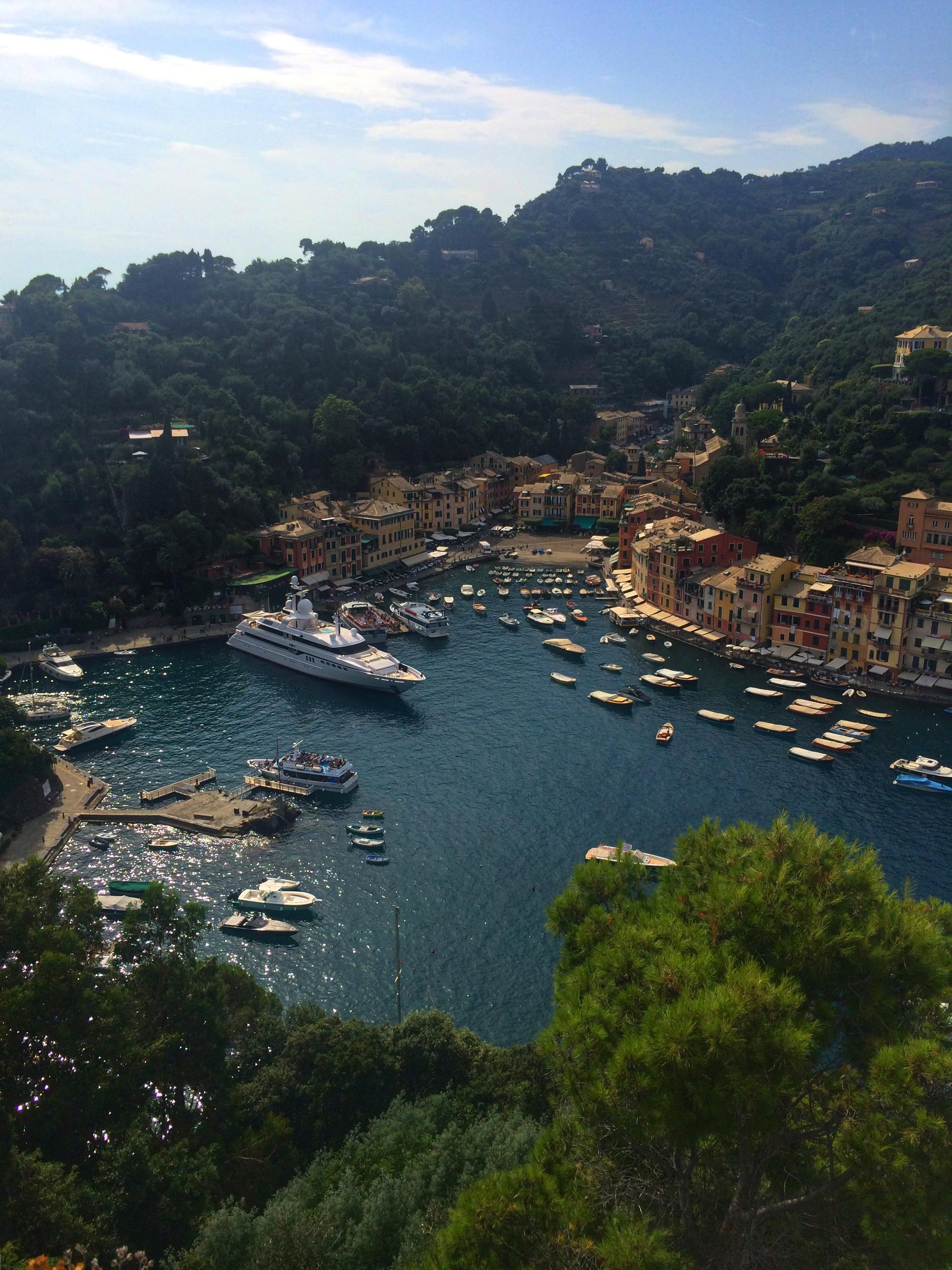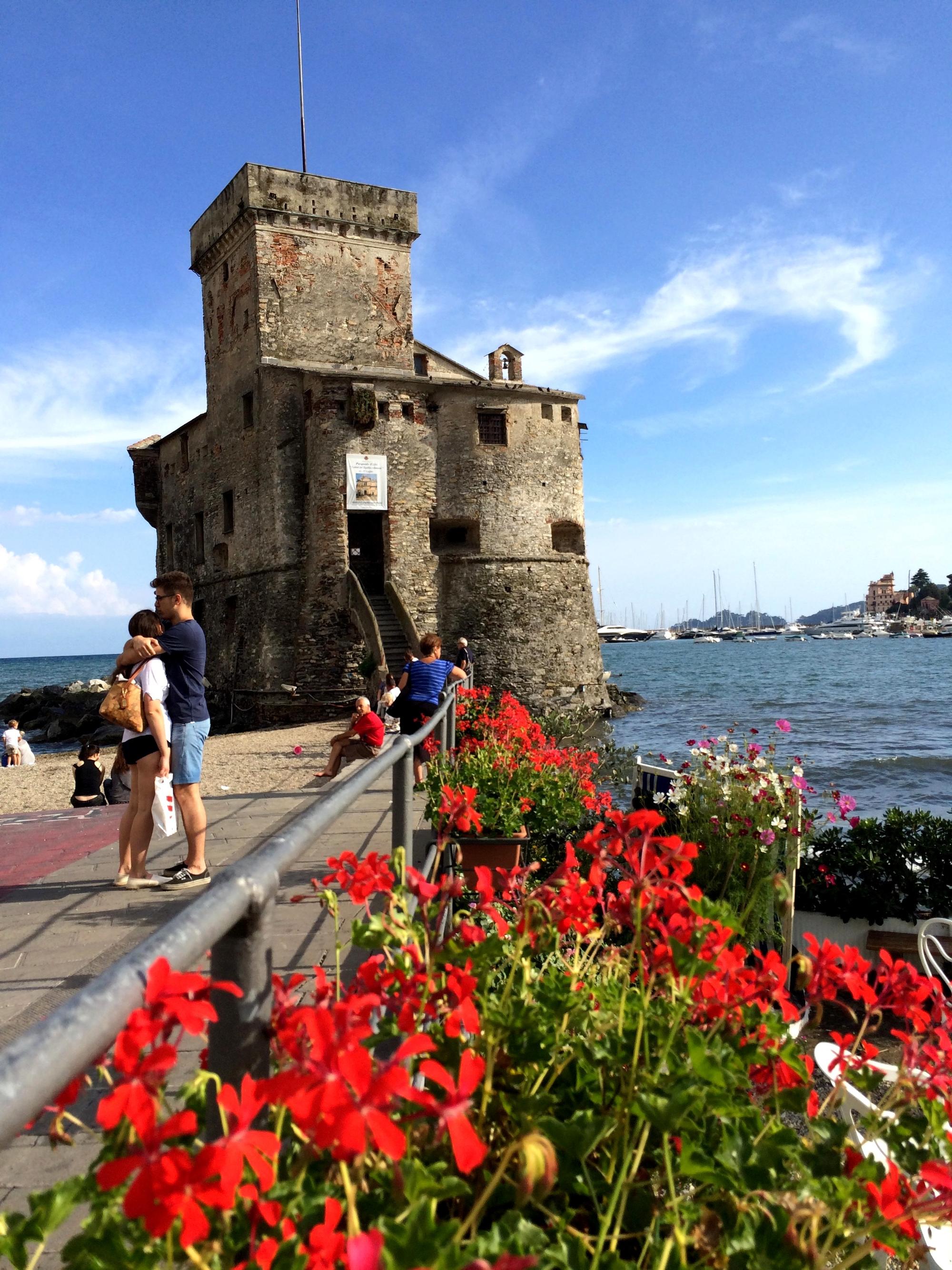 Но самое главное – прямо из окна отеля можно увидеть знаменитый курорт Портофино. Признаться, мне очень хотелось увидеть это местечко – с тех пор, как Жанна Фриске спела песню: «Я сяду в машину, поеду по серпантину». В умах людей Портофино – это итальянский Сен-Тропе, полный понтов, дорогущих яхт, ресторанов, знаменитостей и т.д. У меня было такое же впечатление, до тех пор, пока я лично не оказалась там. Что же такое Портофино на самом деле? Это маленькая очень уютная бухточка, украшенная разноцветными домиками, невероятно стильными яхтами, красивыми людьми на них, дорогими магазинами и утопающая в огромном количестве растений. И все-таки, если бы меня спросили бы, что такое Портофино, я, закрыв глаза, ответила бы: «Это цвета, цветы, цветы», вспоминая тот невероятный аромат цветов, деревьев, который встретил меня у самого берега. Кстати, добраться до Портофино можно 3-мя путями. 1 – автобусом, стоимость билета на который около 4 евро, 2 – корабликом за 11 евро туда и обратно, и 3 - на собственной яхте. Портофино – это небольшой полуостров, который венчает гора. На вершине этой горы находится потрясающий замок, который раньше принадлежал итальянским правителям. Сейчас он пустует, но открыт для посещения туристами. Стоимость прохода – 5 евро. Признаться, сам замок не обладает ничем примечательным, если бы не одно НО. С террасы открывается просто упомопомрачительный вид на всю бухту Портофино. Серьезно – словами не передать! Belissimo! О таких видах мечтают все фотохудожники мира! И снова – вокруг цветы, ароматы, звуки насекомых, пение птиц! Ну самое настоящее райское место! И знаете, будучи именно там, на вершине горы, я поняла, чем так привлекает Портофино аристократов со всего мира. Этими видами, природой, этими звуками, запахами… Тут не знают, что такое «понты». Люди, прибывающие на огромных яхтах, скромны и просты. Тут нет самолюбования, они приплывают сюда, чтобы насладиться этими видами, а не для того, чтобы показать себя. Невероятно! И почему то именно сюда хочется возвращаться снова и снова, и сидя в уютном ресторанчике на берегу моря, потягивая белое, наблюдать, за смешанной обстановкой вокруг – вот приплыл очередной олигарх, а рядом простой рыбак вытаскивает из своей лодки очередной улов, чтобы отнести его в прибрежное кафе. Кстати, любителям искупаться в море бронировать отель в Портофино не рекомендую – в этой маленькой бухточке отсутствуют как таковые пляжи, поэтому для купания надо ездить на соседние курорты – Санта-Маргарита Лигуре или Санта-Фруттозе. Если же отсутствие пляжей вас не очень заботит, тогда ищите отель заранее, так как на период отпусков гостиницы полностью раскуплены!