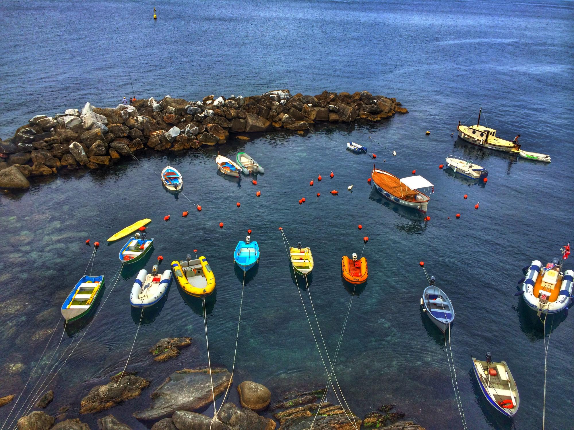 Cinque terre – это жемчужина Лигурии, жемчужина морской Италии. Это 5 малюсеньких деревенек, которые расположились друг за другом на расстоянии не больше, чем 2 км – MonteRosso, Vernazza, Corniglia, Manarola и Riomaggiore. На самом деле, это обычные бедные рыбацкие городки, где основной заработок людей – сбор винограда и как раз таки рыбалка. И все бы ничего - подумаешь, какие-то рыбацкие деревни- если бы не потрясающие виды, открывающиеся с этих самых деревень. Такой ощущение, что ты оказался в открытке. Цветные обшарпанные домики, которые нависают друг над другом, невероятные скалы, откуда торчат потрясающе красивые деревья, трава, цветы, запах моря, голубо-зеленая вода! Ты смотришь на все это и не веришь, что еще вчера ты видел это в интернете, а сегодня ты оказался внутри этих потрясающих пейзажей!