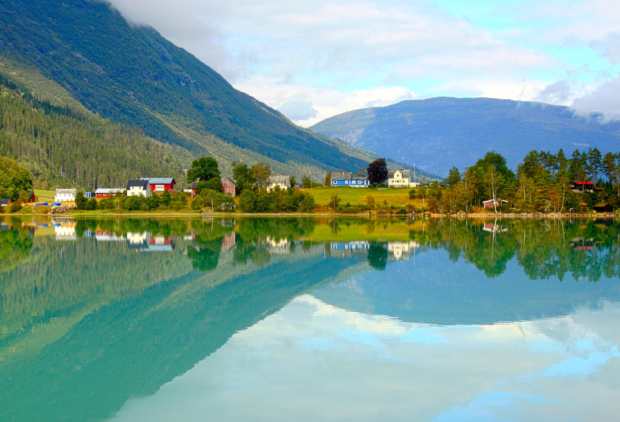Многоэтажек и жилых комплексов мало, почти нет. В основном люди живут в частных домах. Дома простые, но удобные. Размером жилища никто выделиться не пытается. Если говорить языком архитекторов, здесь скорее доминанта цвета, нежели формы. Стихийно или нет, здесь сложилась очень благоприятная для человека не отвлекающая модель созерцания природных красот! Зато как чудно эти неприхотливые, зачастую однотонные домики смотрятся в отражениях глади фьорда!