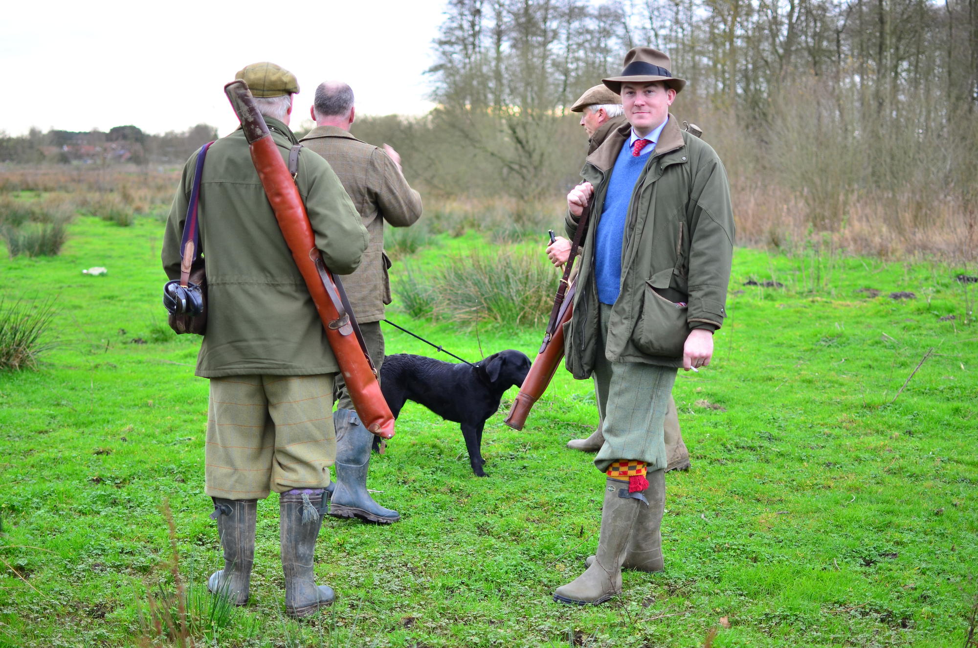 Итак: все участники охоты делятся на стрелков и загонщиков. Загонщики буквально выгоняют дичь из леса, а стрелки, соответственно, на выходе ведут отстрел. Что мне понравилось, так это отношение к стрельбе – ценится не только трофей, а скорее, красота выстрела. Неотъемлемыми участниками являются собаки, в подавляющем большинстве это лабрадоры, безупречно выдрессированные. Ну, почти безупречно, например, лабрадор моего свёкра – красавец Монти, наотрез отказывался прыгать за фазанами в воду (холодно же!) или лезть в колючие кусты (колется же!). Чем немало повеселил всех охотников (и остальных собак) и навсегда влюбил меня в эту замечательную породу! Не могу не отметить не просто традиционность, а буквально, церемониальность всего происходящего. От униформы охотников (все мужчины не только в специальных костюмах и обуви, но и в галстуках) до организации самого процесса, включающего завтрак (во время него тянется жребий, который определяет стрелковый номер охотника), перерыв (с выпивкой и закусками) – во время него деляются ставки на количественный результат охоты, а также праздничного обеда, где подводятся итоги, ну, и просто веселятся.