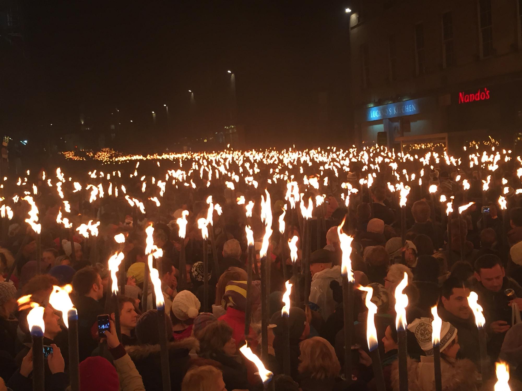 Новый Год решено было отмечать в Эдинбурге – столице Шотландии. И выбор этот не случаен. Дело в том, что Hogmanay (празднование Нового Года) для шотландцев – это самый большой праздник в году! Торжества начинаются заранее, самое зрелищное из них – это факельное шествие, заполняющее улицы старого Эдинбурга 30 декабря. Каждый желающий может принять участие в шествии, заранее купив факел. В этом году шествие собрало порядка 30 тысячи участников – огненная река постепенно текла по старинным мостовым, создавая непередаваемую мистическую картину, объединяющую сотни и тысячи людей с разных уголков земли. Весь путь процессию сопровождают барабанщики и трубачи, а заканчивается всё свето-звуковым и пиротехническим шоу. 31 декабря Эдинбург – это большая концертная площадка с живой музыкой, именитыми диджеями, разнообразными развлечениями, трансляциями на гигантских экранах, пабами и барами под открытым небом. Мы купили билеты на 2 закрытые площадки – первая была с традиционными шотландскими танцами под волынку - кейли, и я никогда не думала, что плясать под волынку настолько весело, хотя у каждого танца есть свой рисунок, который музыканты терпеливо и доходчиво объясняли со сцены. Вторая площадка представляла собой огромную сцену в саду, где на разогреве исполнялись мировые поп-хиты, а хэдлайнером была озорная Лили Ален. Должна отметить, что на закрытых площадках не такая толкотня и давка, чувствуешь себя увереннее и защищённее от 70-тысячной толпы собравшихся гостей. В первые секунды Нового года с холма, на котором стоит знаменитый Эдинбургский замок, бьют потрясающей красоты салют! Все поздравляют друг-друга, танцуют и поют! Эдинбург нам очень понравился - это город-история, город-легенда, одетый в знаменитую шотландскую клеточку и неспешно живущий под звуки волынки.