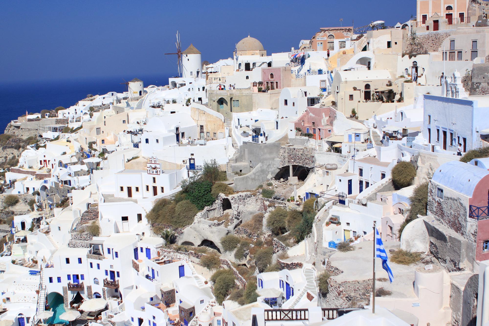 Вулканический остров Санторини - голубая мечта