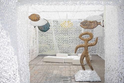 Благодаря использованию приёма светотени и воздушного белого материала, посетители на мгновение переносятся в морские глубины. Парящие в воздухе рыбы и лёгкие движения ткани создают иллюзию подводного мира. Аккомпанирует фантазийным глубинам спокойная музыка.