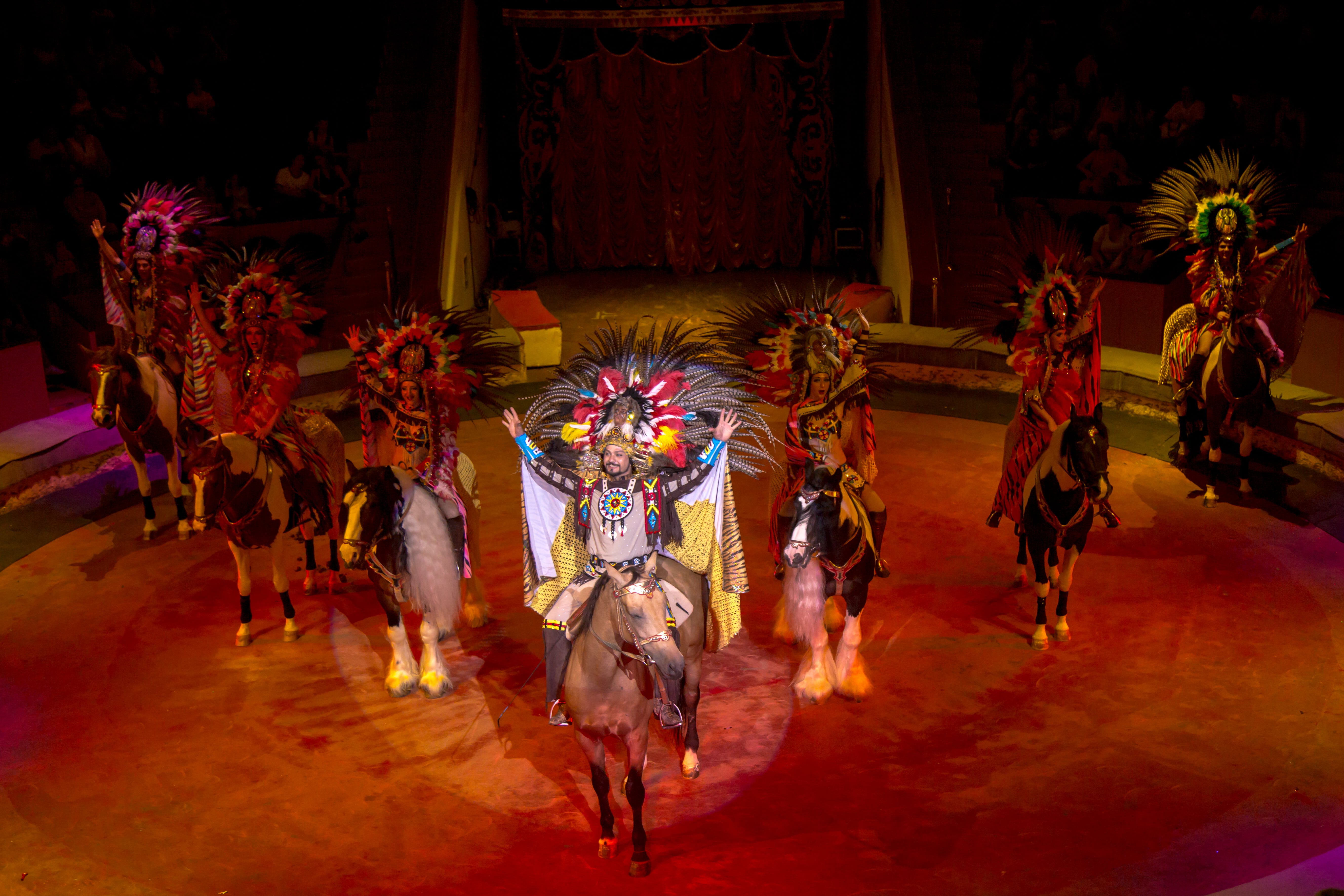 Завоевавшие высшие оценки международного жюри, акробаты конного аттракциона «Джигиты - Апачи» в 2019 с честью представили нашу страну на самом престижном международном цирковом фестивале в Монте-Карло, завоевав Золотую награду. Хрупкие, но такие смелые, девушки под руководством Рустама Газзаева с лёгкостью выполняют «мужские» трюки на бешеной скорости, заряжая зрителей позитивом и адреналином!