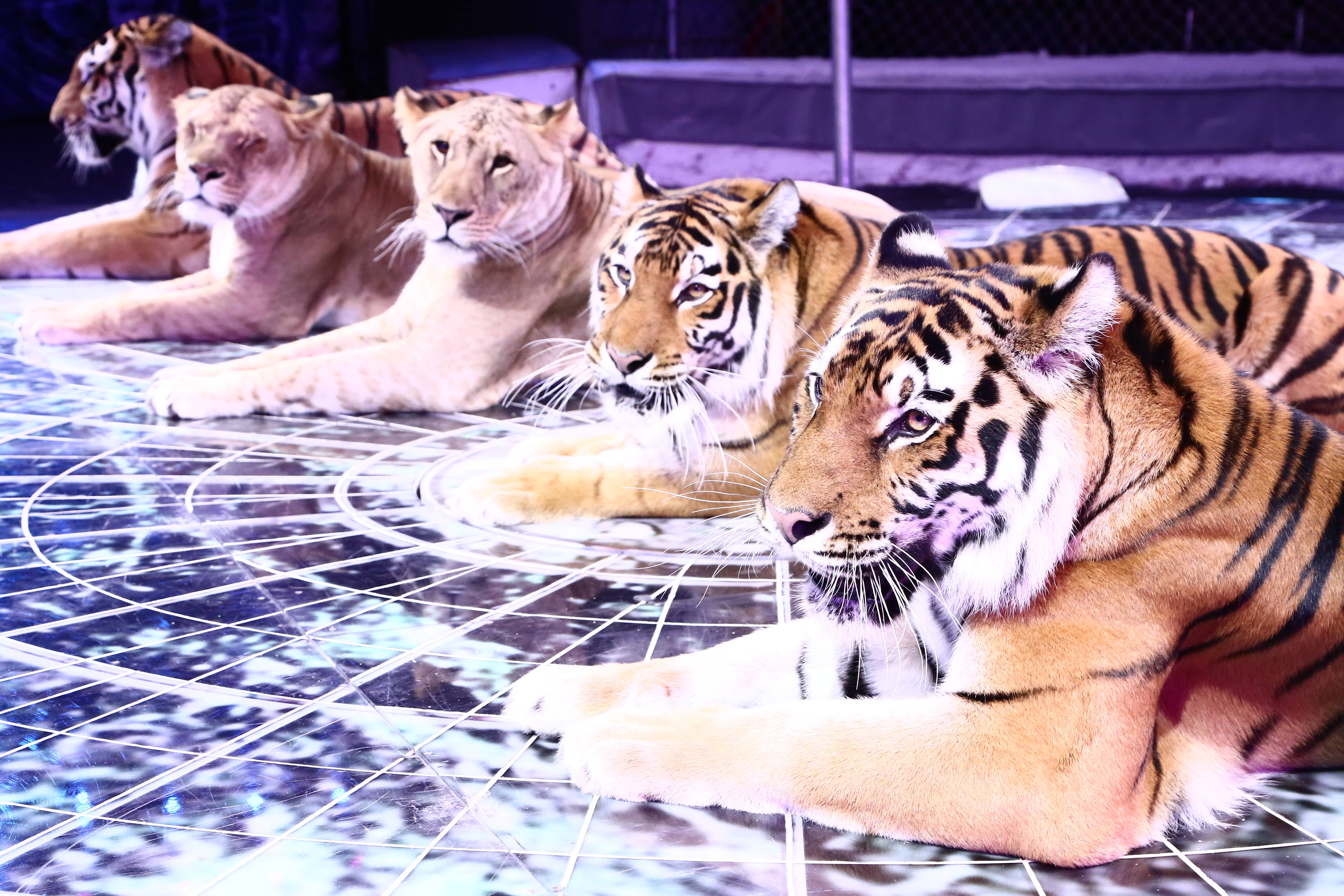 Аттракцион с участием тигров, лилигров, леопардов и черных пантер (всего 12 хищников!) под руководством Заслуженных артистов России Наталии и Андрея Широкаловых – рекордсмен по количеству высших международных наград -10! Наталия - обладательница Золотой короны фестиваля «Принцесса цирка», Андрей – обладатель звания «Дрессировщик года». Контактная дрессура нового поколения, авторские трюки, природная красота и сила таких разных, но одинаково опасных хищников, заставляет зал затаить дыхание и восхищаться!