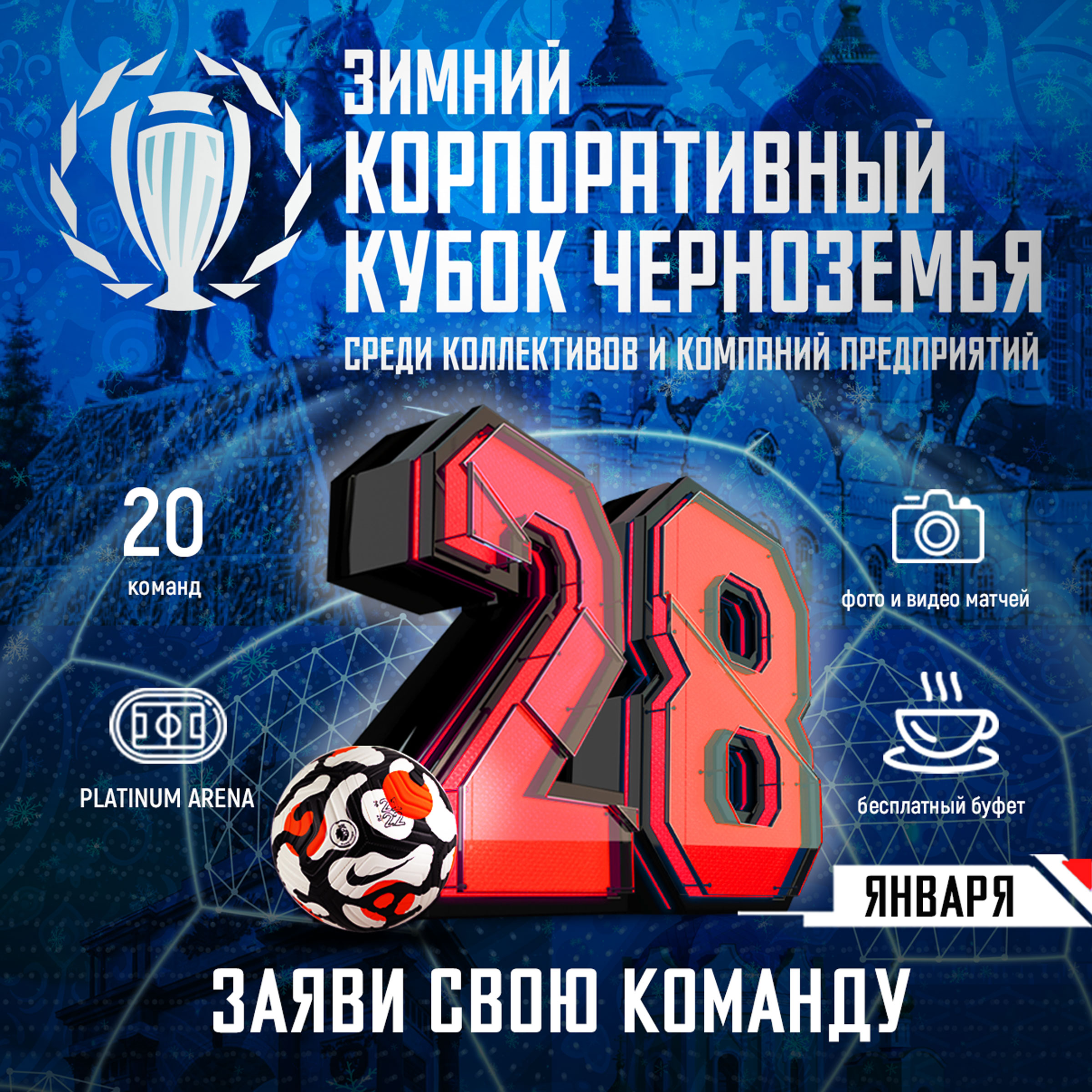 Футбольное первенство среди российских компаний Черноземья, которые заботятся о корпоративном духе и здоровом образе жизни своих сотрудников, объединит ведущих представителей из различных отраслей: аграрной, промышленной, строительной, банковской, топливно-энергетической, торговой, IT&Telecom, транспортной, фармацевтической и др.