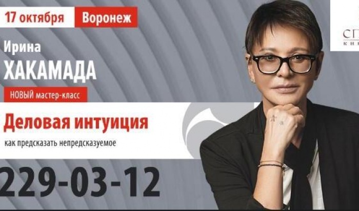 Новый мастер-класс Ирины Хакамада в Воронеже посвящен деловой интуиции! Чувству, которое и спасает судьбы многих людей и их бизнесов в состоянии неопределенности.
