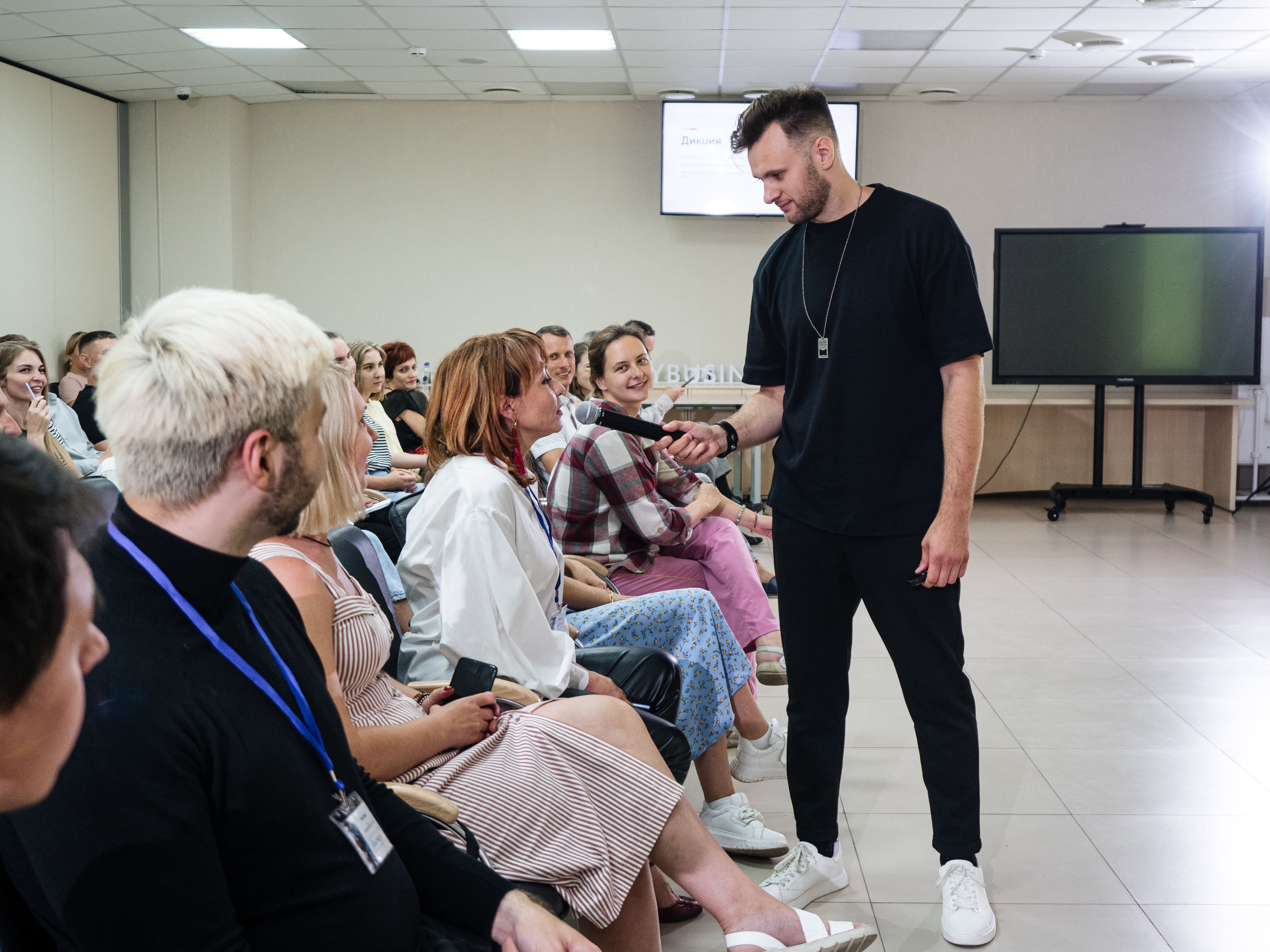 На тренинге собрались те, кто хотел приобрести или подтянуть свои навыки в умении уверенно говорить на камеру или со сцены, записывать сторис или просто улучшить свою речь. Это был отличный повод раскрыть свой потенциал и побороть страх публичных выступлений. Научиться продавать, договариваться, знакомиться, влюблять в себя, управлять диалогом.
