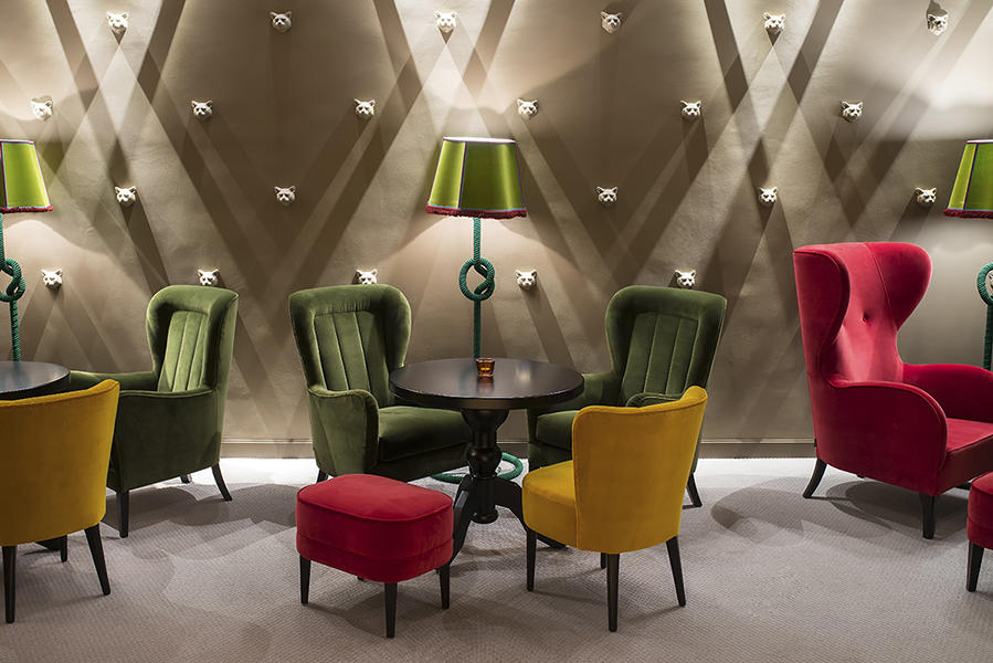 Над архитектурой и дизайном гранд-кафе работала московская группа компаний, проекты которой отмеченны престижными европейскими наградами в области архитектуры. Интерьер гранд-кафе весьма необычен: разноцветная и разнофактурная мебель, кресла и диваны, плазменные экраны, причудливые арт-объекты, крупные вазы и множество декоративных зеркал с патиной. Для удобства гостей во всех залах организован высокоскоростной Wi-Fi доступ в интернет.