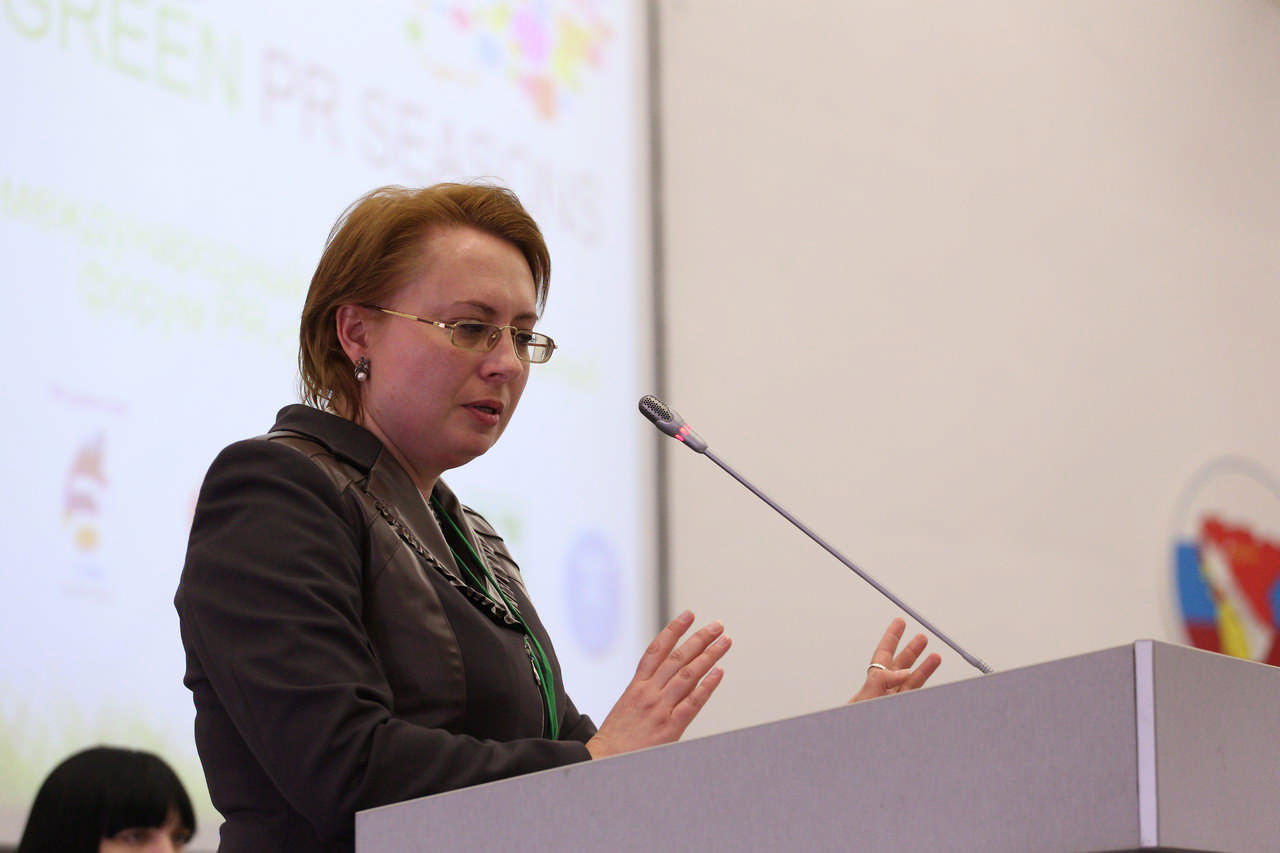 Надежда Муравьева, спикер от Всероссийского центра политических технологий и социальных исследований (г. Москва), разносторонне подошла к вопросу о Green PR. Она рассмотрела особенности восприятия «зеленых» технологий различными социально-общественными группами: населением территории, властью, общественными организациями, бизнесом и другими социальными институтами.
