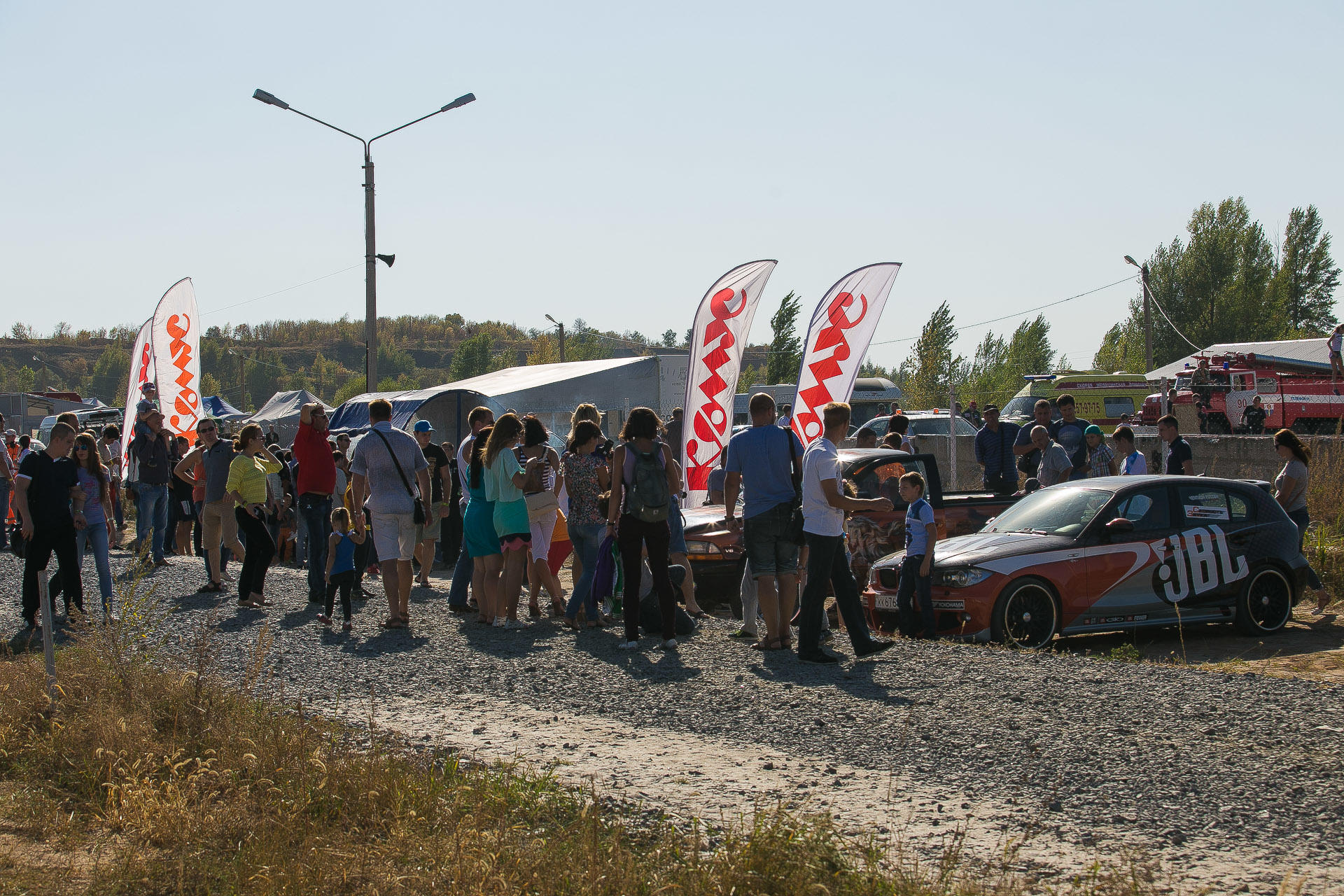 На территории парковки все ценители хорошей и качественной музыки в автомобиле могли насладиться хорошим звуком в машинах Додж и БМВ 1 от магазина «Скорость Звука».