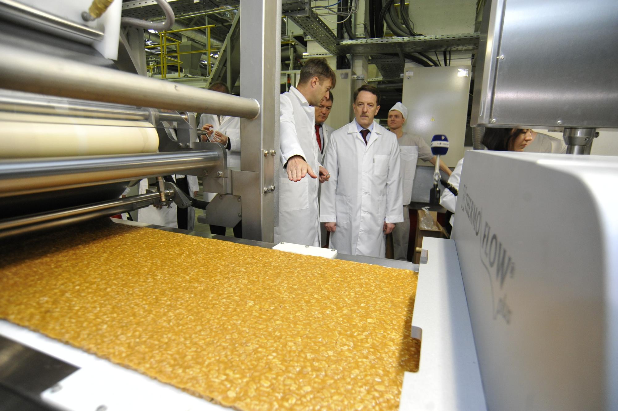 Алексей Гордеев осмотрел запустившиеся технологические линии по производству попкорна, соленых тыквенных семечек, конфет на основе нуги и карамелизированных вафель. Главе региона также показали работающий распределительный центр площадью 36000 кв. м. на 52000 паллетомест. Центр укомплектован универсальными паллетными стеллажами высотой 12 м и полностью покрывает потребность предприятия в хранении запасов готовой продукции, позволяет обеспечивать оперативную отгрузку товара.