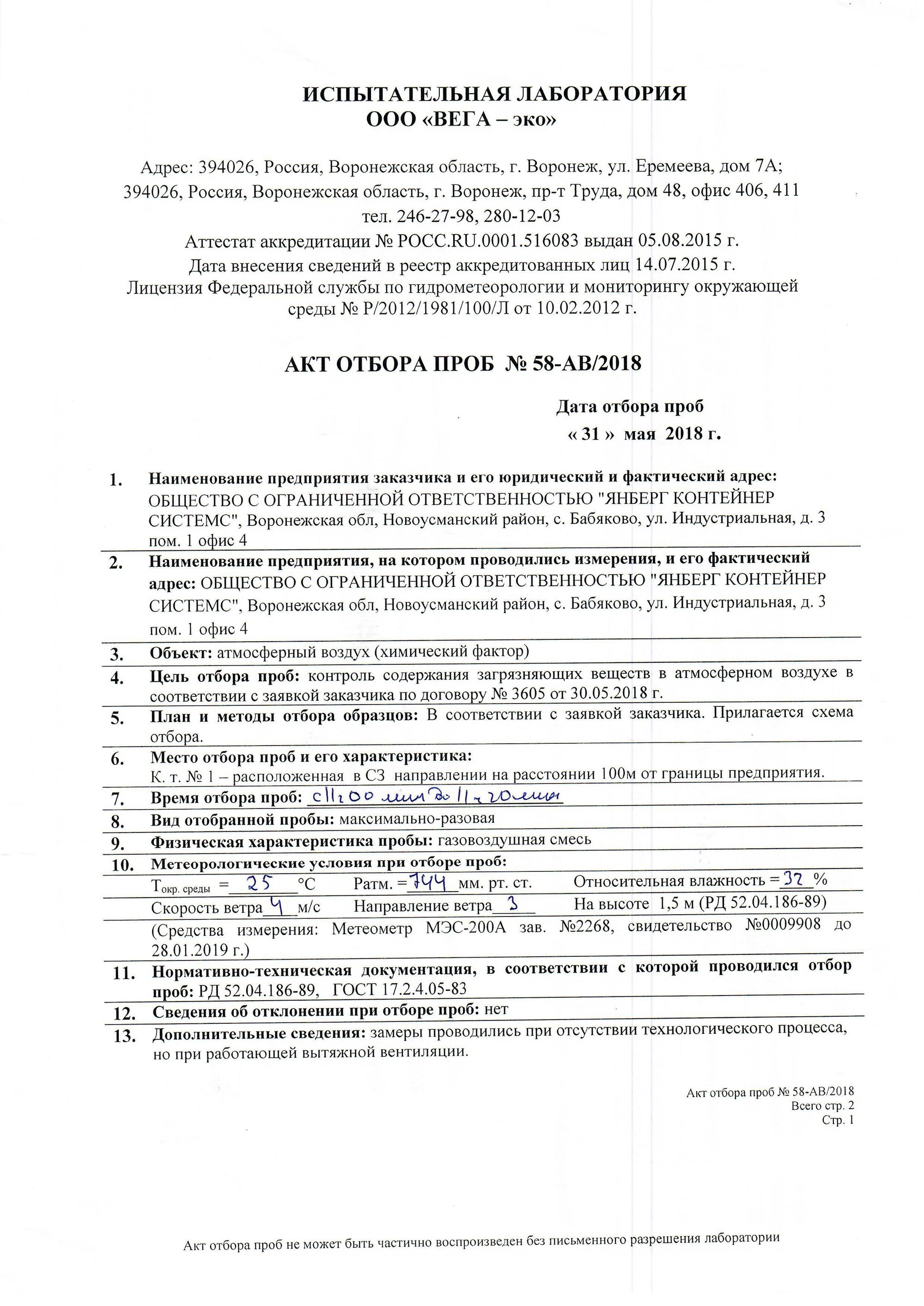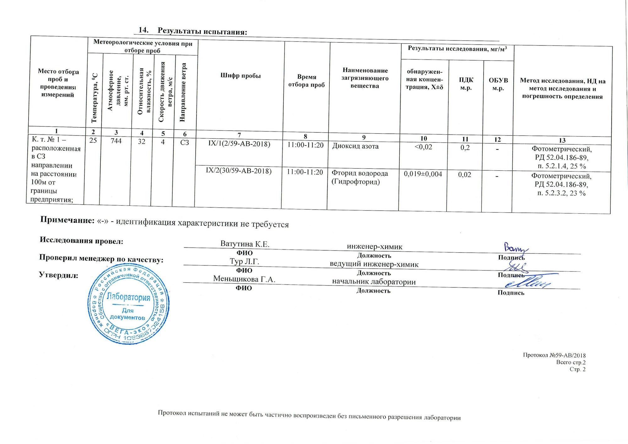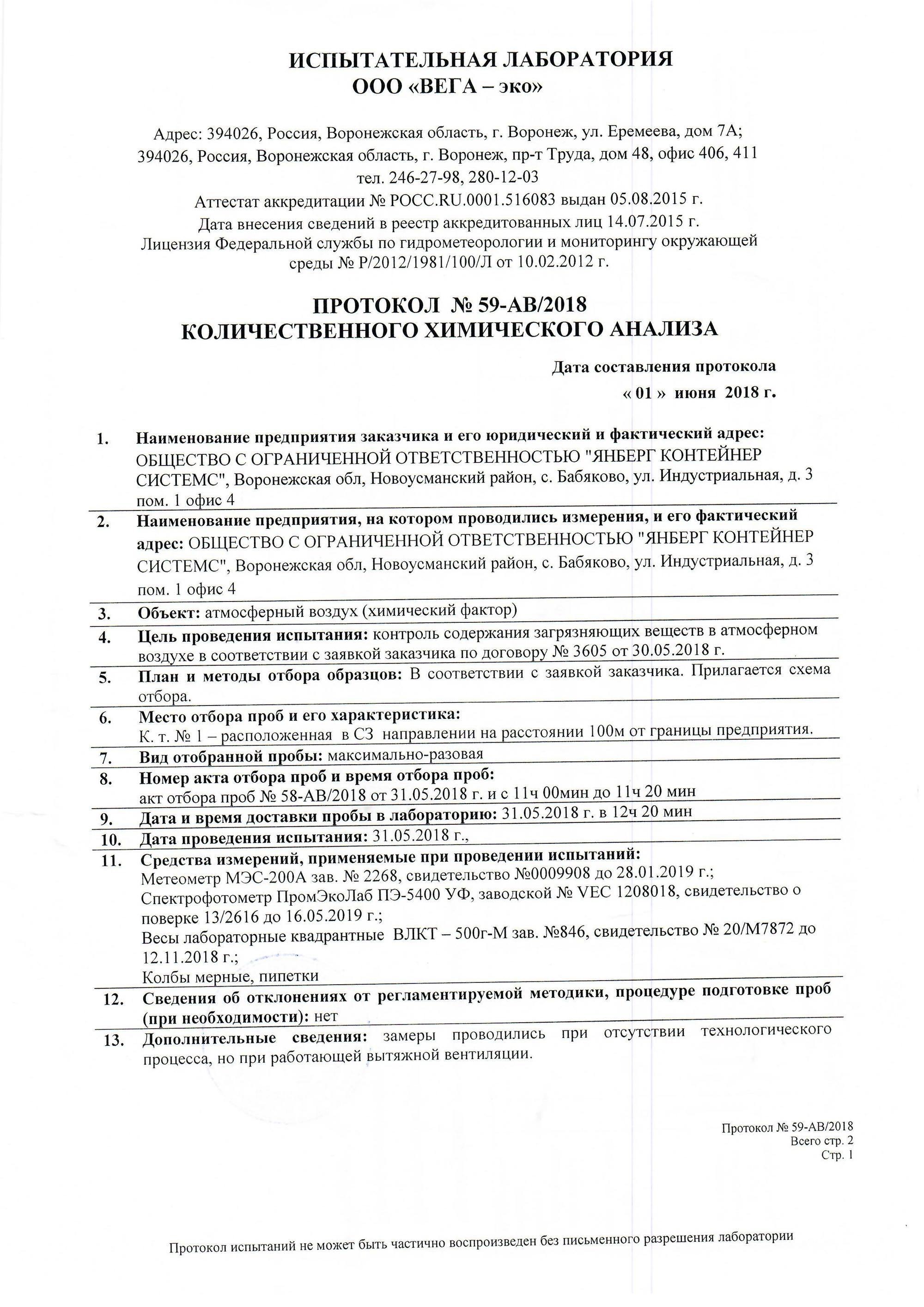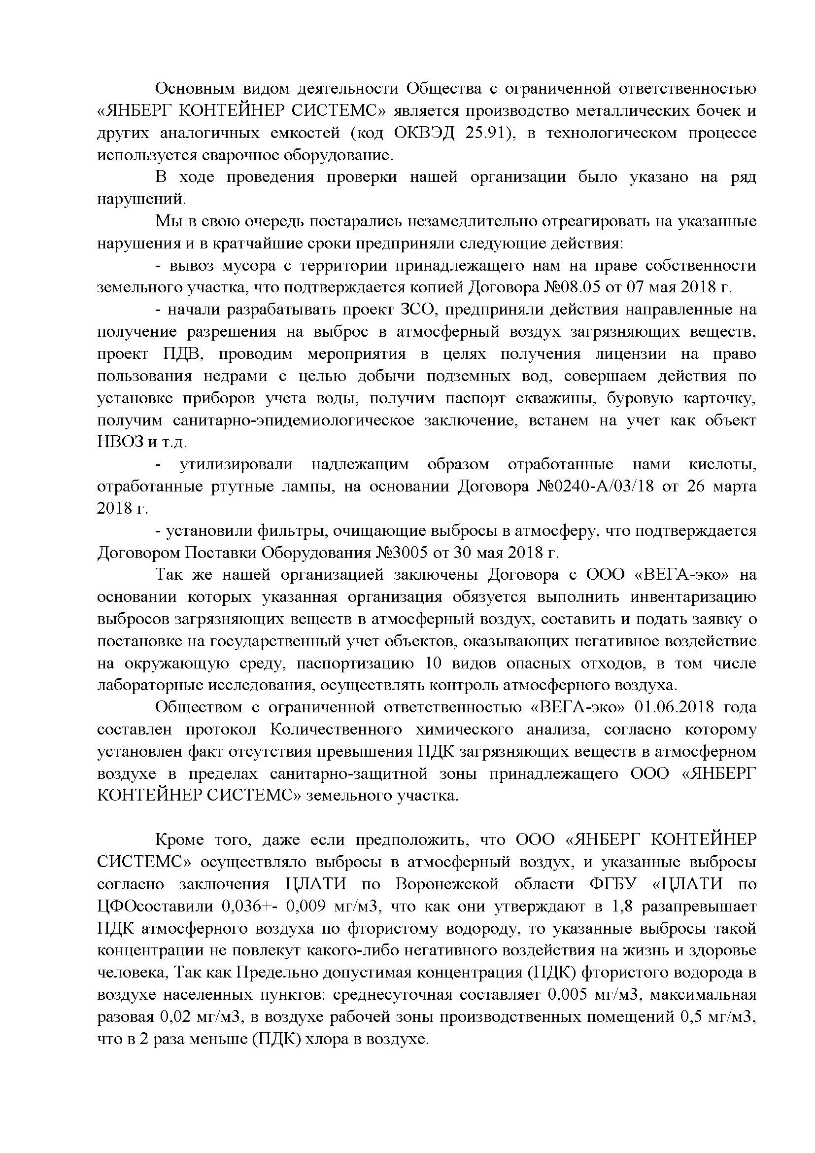 "Янберг" заказал две независимые экспертизы у авторитетной воронежской испытательной лаборатории ООО "ВЕГА-эко", которая провела аналогичное исследование воздуха и подтвердила, что концентрация паров фторида водорода не превышает ПДК (протокол No59-АВ/2018 Количественного химического анализа и протокол № 84-АВ/2018 Количественного химического анализа).