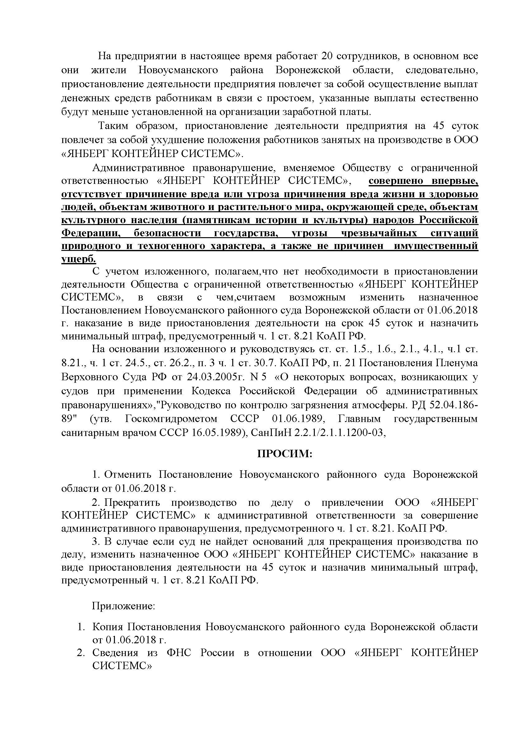 Судья Новоусманского района Воронежской области Самойлова Л.В. вынесла решение о закрытии предприятия на 45 дней, хотя по закону эта «высшая» мера осуществляется только в крайнем случае - при угрозе жизни и здоровью людей или массовой гибели животных. Наше предприятие подало апелляцию в областной арбитраж (суд назначен на 27 июня 2018 года) и надеемся на объективное и законное рассмотрение нашего дела.