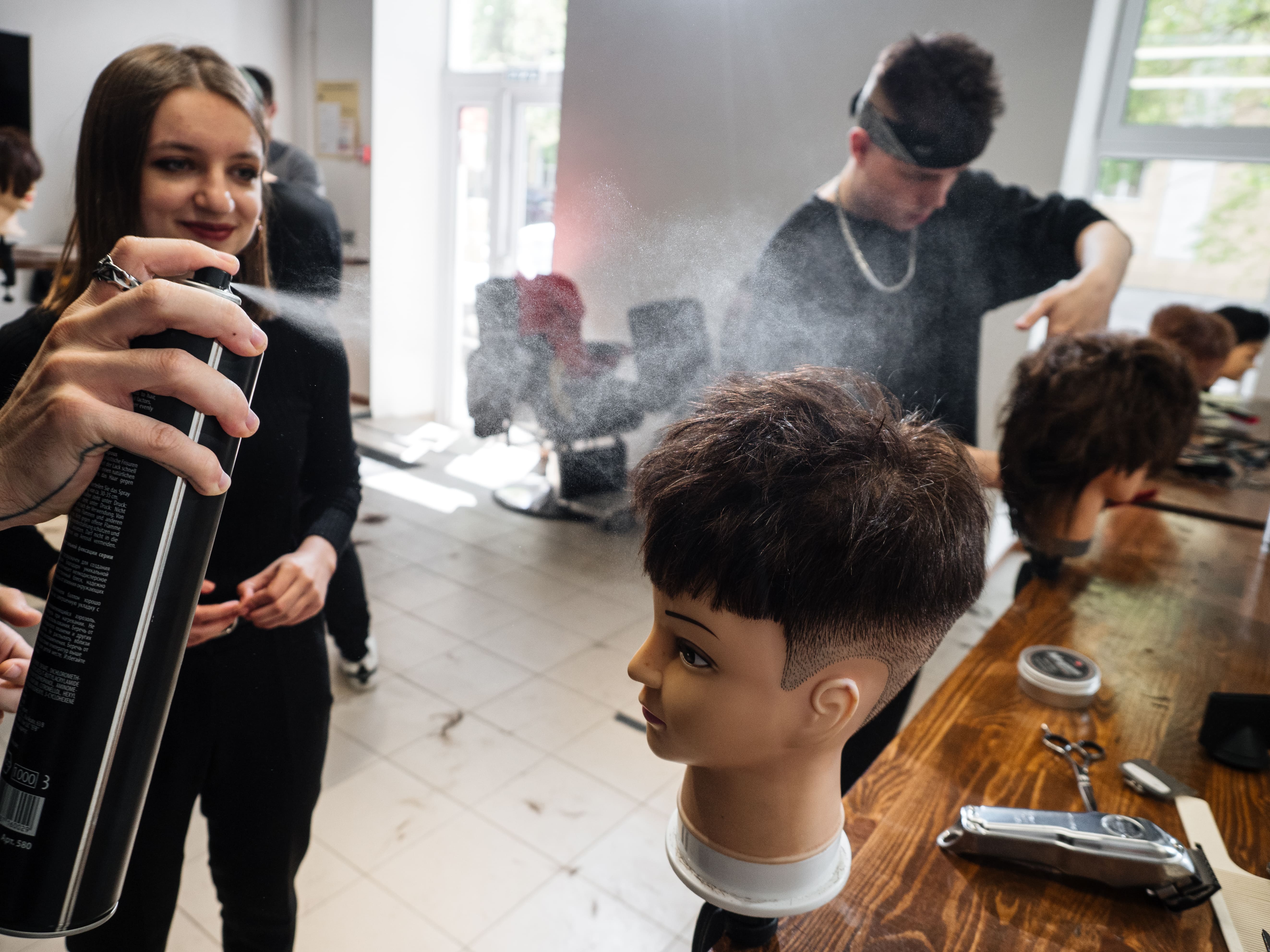Все стрижки произвели на специальных манекенах, поэтому удалось максимально поработать с профессиональным инструментом. По окончанию стрижек был проведен разбор укладочных средств с последующим применением на манекенах.