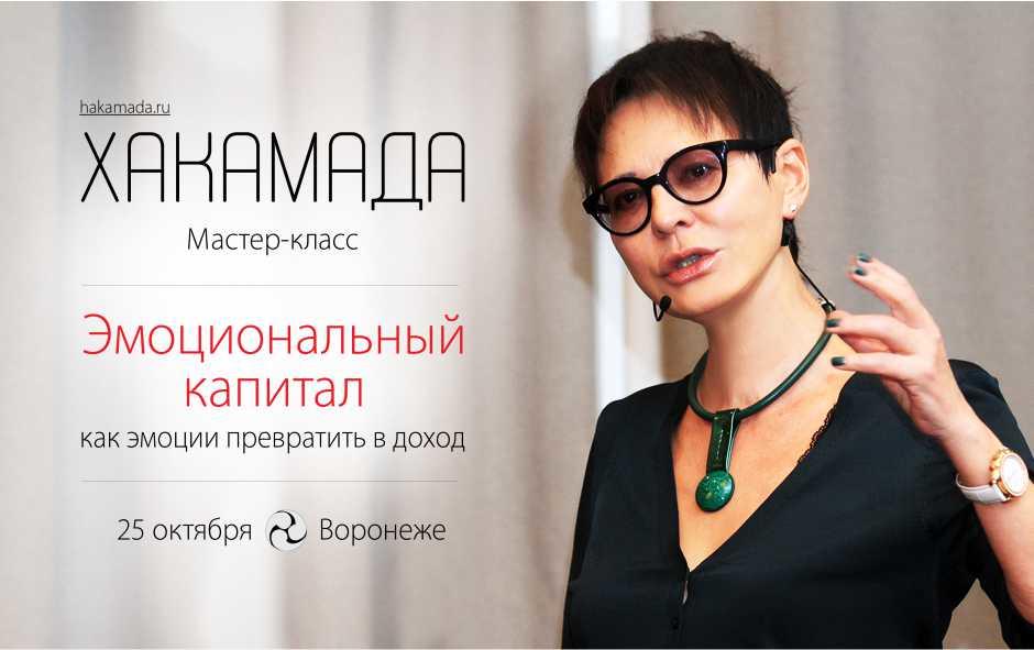 Посещение мастер-классов Ирины Хакамады стало хорошей традицией уже более, чем для полутора тысяч жителей Воронежа; которые уже получили работающие инструменты достижений больших результатов и становления гармоничной успешной личности. Сегодня мир и Россия стремительно меняется. Это требует, от каждого новых целей, новых подходов и самое главное – это море конструктивной энергии. Именно заряд конструктивной энергии получат все участники нового мастер-класса от Ирины Хакамада «Эмоциональный капитал. Как эмоции превратить в доход».