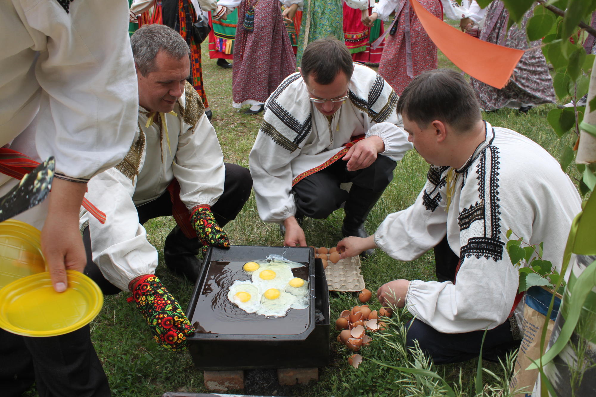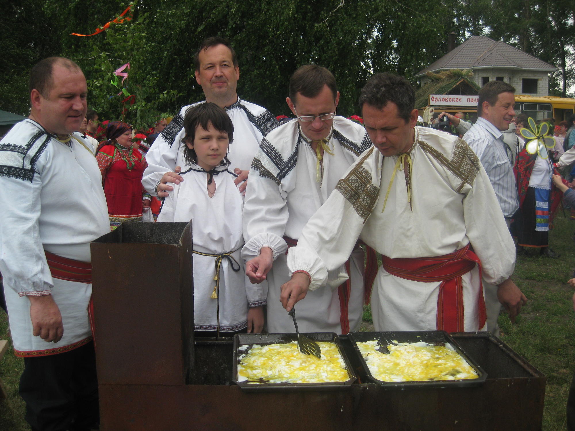 - Традиционное «Троицкое угощение» яичницей.
