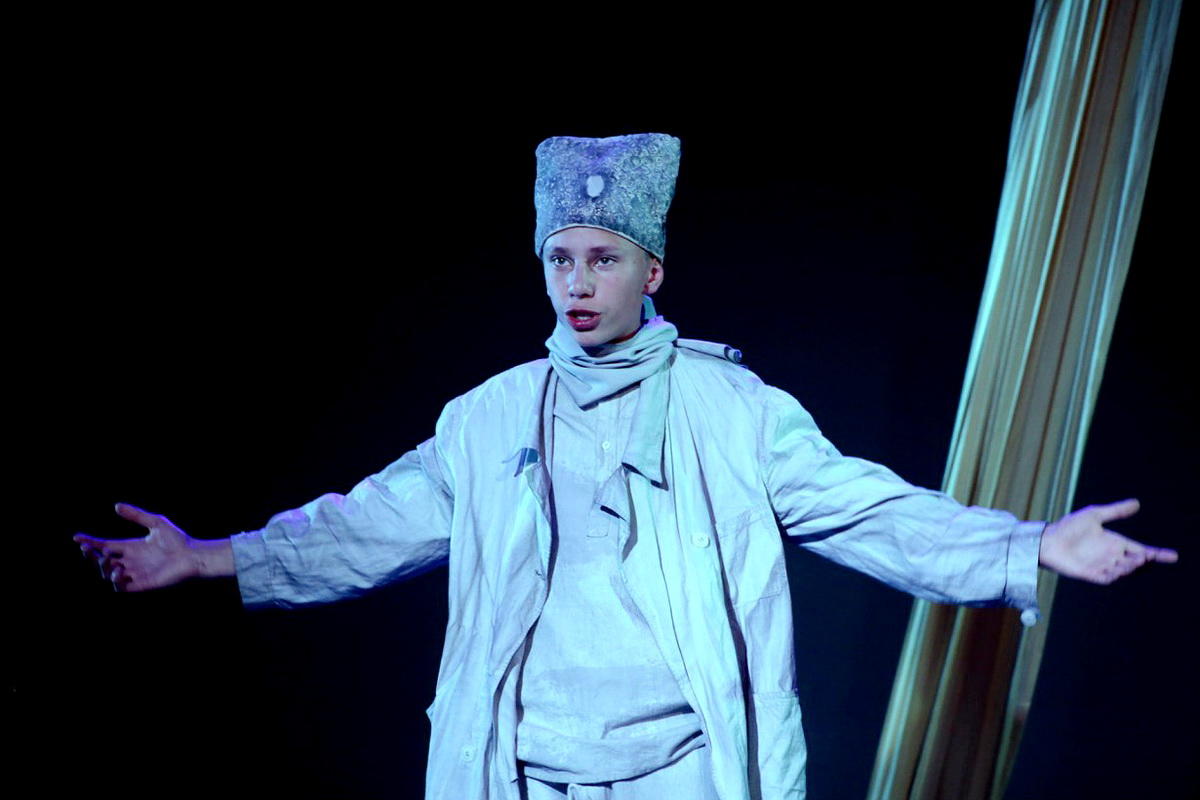 Спектакль «Ювенильное море», поставленный художественным руководителем воронежской студии, заслуженным артистом России Александром Новиковым, отражает амбивалентный образ эпохи строителей коммунизма, мечтающих о великом будущем. В спектакле выстроены емкие образы бесцветной покорной людской массы, где человек становится безвольным существом, не вызывающим сострадания у ближнего. Толпа идет за тем, кто многообещающе взывает с трибуны, а общество ценит только дисциплину, а не индивидуальность и фантазию. Среди персонажей выделяются лишь главные герои – Николай и Надежда, не потерявшие желания понимать окружающую действительность и преобразовывать мир.