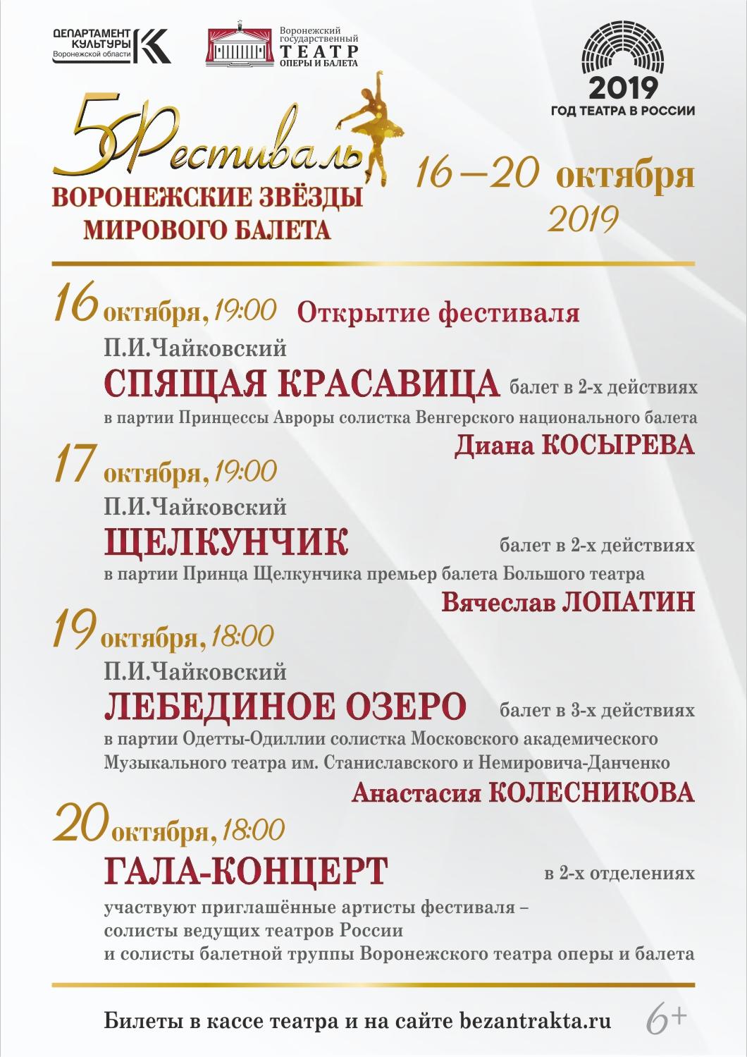 С 16 по 20 октября 2019 года в Воронежском театре оперы и балета пройдёт 5-й фестиваль «Воронежские звёзды мирового балета».