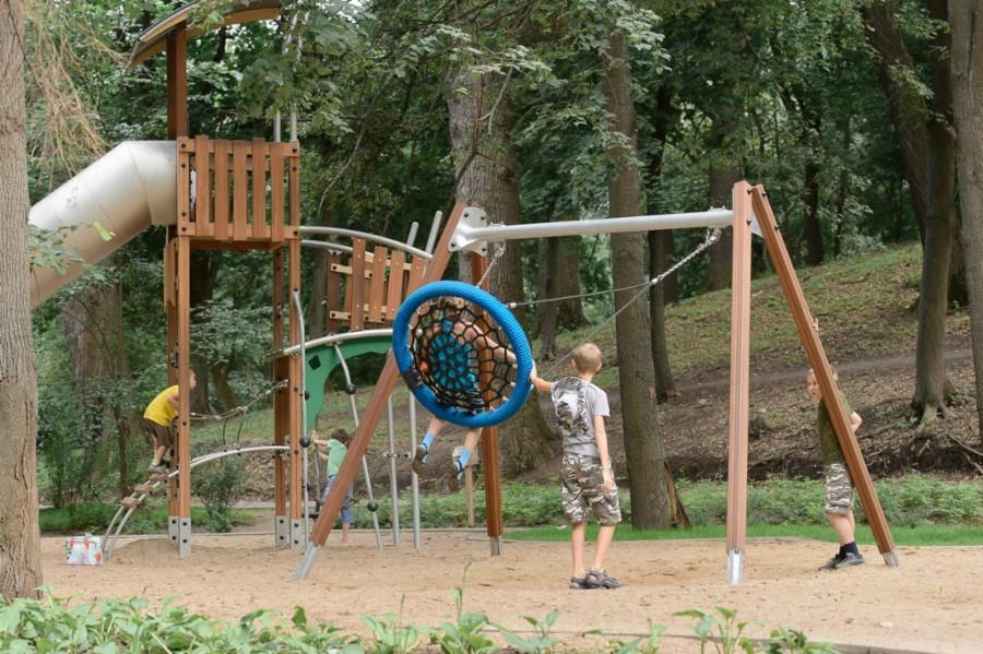Алексей Гордеев прошелся по центральной аллее парка и осмотрел детские игровые площадки, монтаж которых полностью завершен.