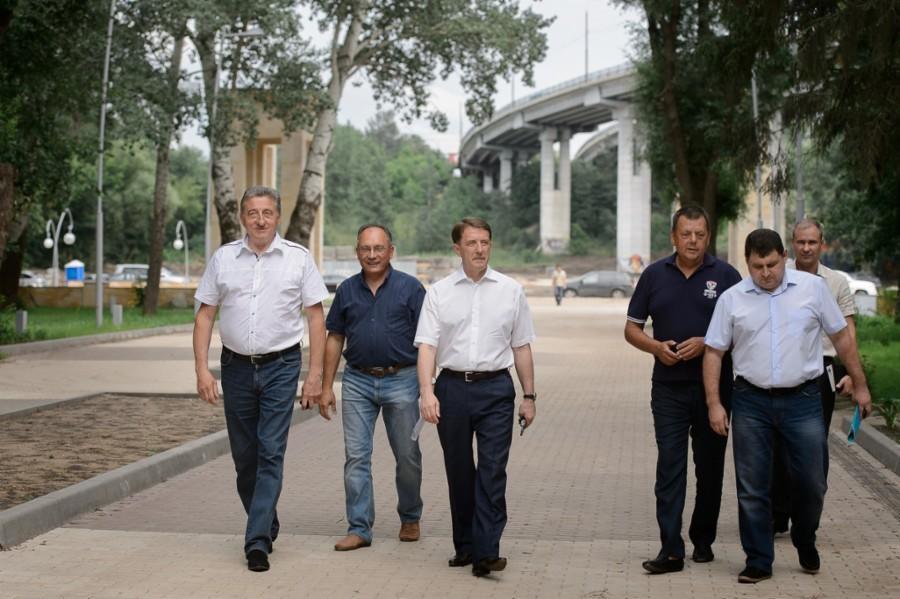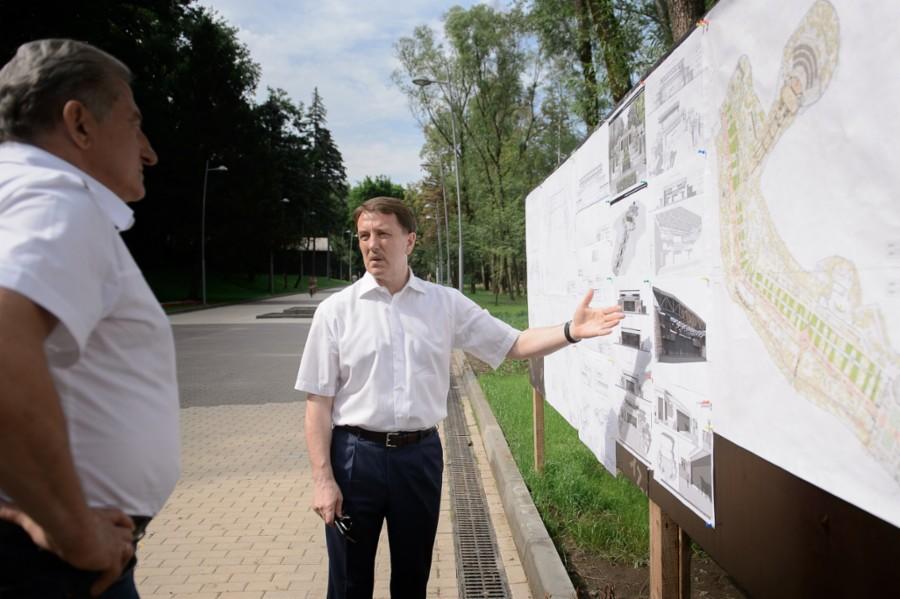 27 июня губернатор Алексей Гордеев посетил Воронежский центральный парк и в очередной раз проинспектировал, как идут работы по его реконструкции. Губернатор в парке провел рабочую встречу с представителями строительной сферы региона. На встрече также присутствовал член Совета Федерации от Воронежской области Сергей Лукин. В ходе встречи обсуждалось возможное участие в дальнейшей реконструкции парка воронежских строительных компаний, в частности, в проекте строительства «Зеленого театра».
