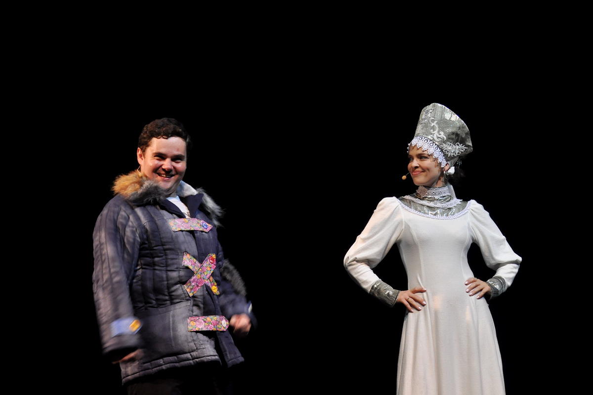 На большом экране были продемонстрированы фрагменты премьерных спектаклей сезона 2015-2016 года, поставленных на Большой и Малой сценах: «Метель», «Море», «Женитьба», «Академия смеха» и «С любимыми не расставайтесь». В некоторых эпизодах действие с экрана плавно переходило на авансцену, а между произведениями сценаристы вечера выстраивали неожиданные логические и художественные связи – например, цензор Сакисака из постановки «Академия смеха» устроил приемку одной из сцен спектакля «Море».