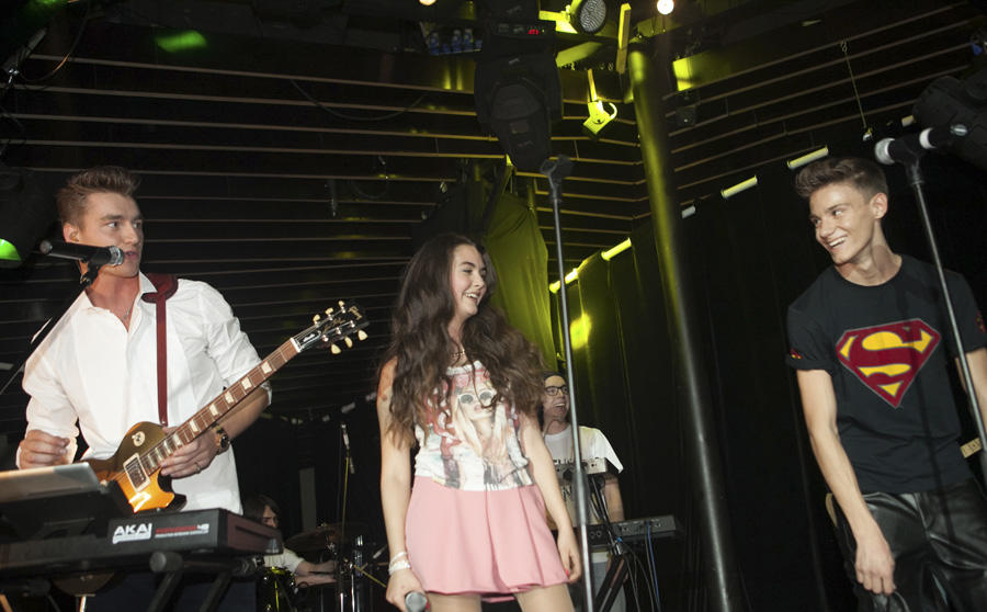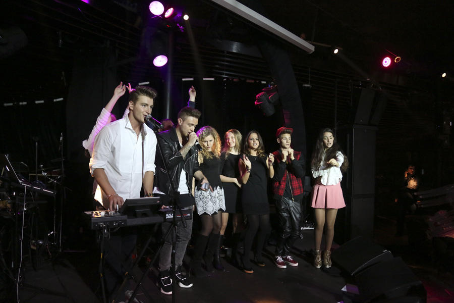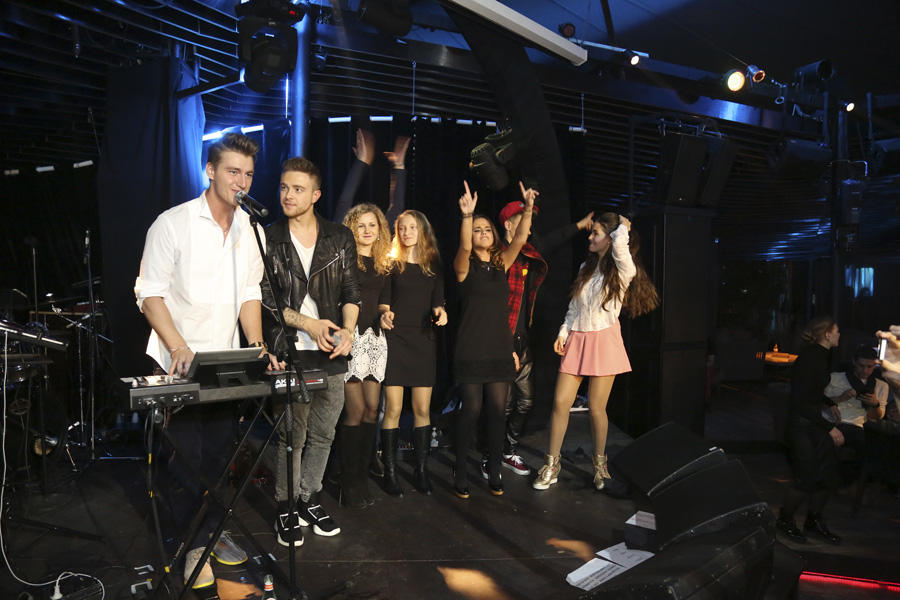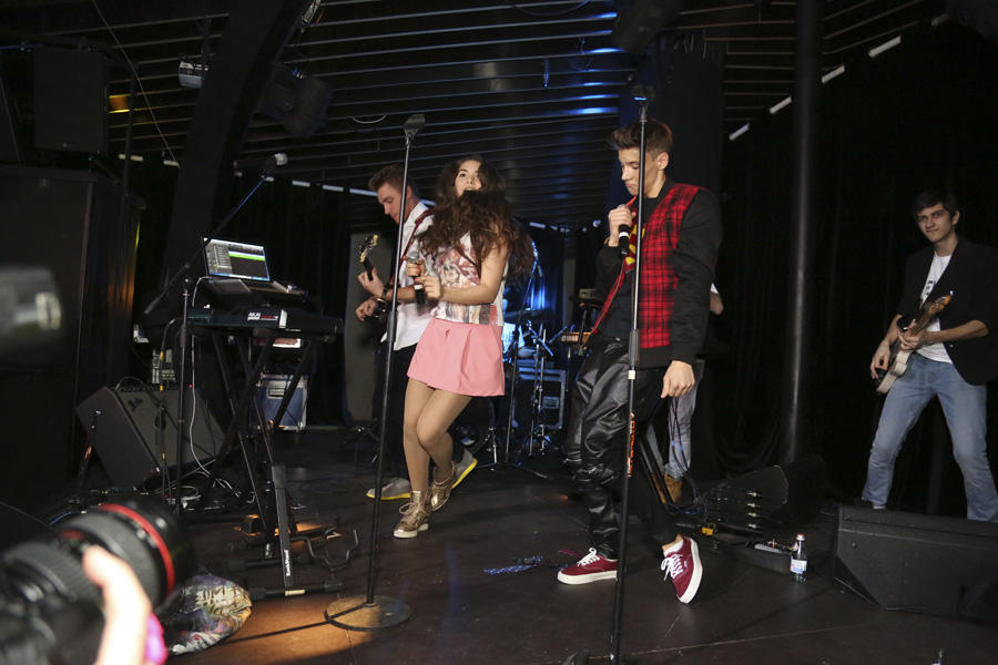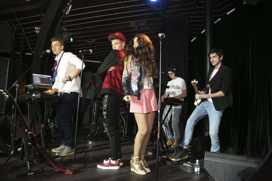 Обращаясь к гостям, Леша пошутил, что музыкальные видео для него-своего рода тренировка перед полноценным кино, и подчеркнул, что любой фильм, по его убеждению, должен заставлять зрителей, в первую очередь, испытывать эмоции. И это начищающему режиссеру, без сомнения, удалось-4х минутная чистая и трогательная история, разыгранная на четверых-роли школьника Воробьева и его возлюбленной достались юным дебютантам - ФрендАМ Паше Королеву и Насте Дворянской, (взрослых сыграли сам Леша и Катя Савчук) заставила прослезиться почти всех присутствующих в зале девушек. ФрендЫ-музыкальный продюсерский проект Воробьева, которые не только исполняют вместе с ним все Воробьевские хиты-саундтреки к популярному сериалу ТНТ, но и новые песни, которые Леша написал специально для них. Снятый Алексеем клип "Всегда буду с тобой" стал для них дебютным, а его презентация-практически первым выходом на сцену в полном составе, с музыкантами, и перед такой профессиональной и взыскательной аудиторией. Юные артисты блестяще справились с волнением, и, выйдя вместе с ним на сцену, не подвели своего продюсера. Глядя на этих подростков, "зажигающих" под живой бэнд, трудно было поверить, что 16-летнего Пашу Королева Алексей нашел всего пару месяца назад, проведя кастинг в интернете, а умнице и красавице и Насте Дворянской всего 13(!!!) лет, и она учится всего лишь в седьмом классе!