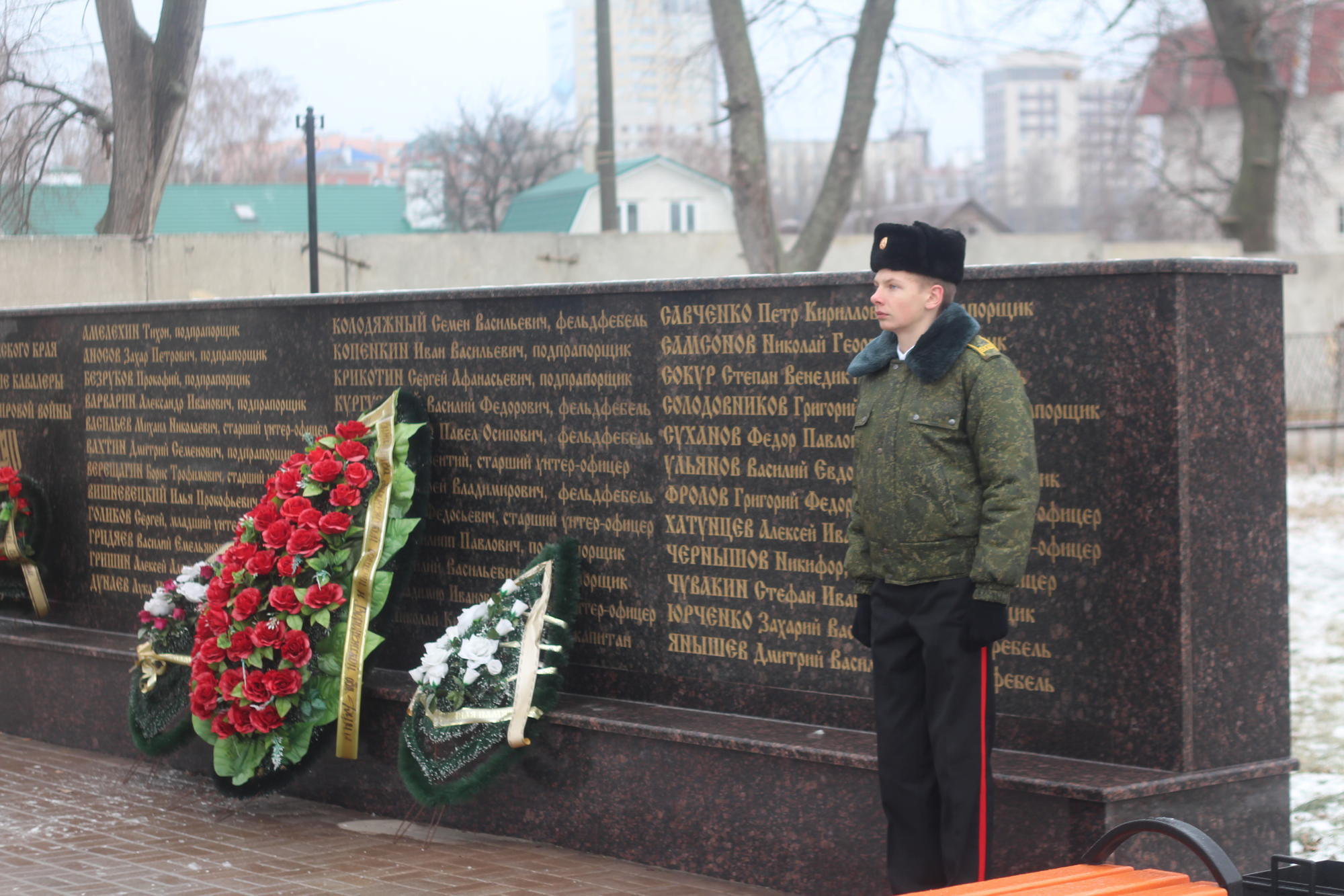 Чин панихиды отслужил духовник Воронежского отдела ООД «ЗВиО», настоятель Владимирского храма протоиерей Геннадий Пашкевич. Под величественные звуки старинного гимна «Сколь славен» церемония завершилась возложением венков к Георгиевскому пилону.