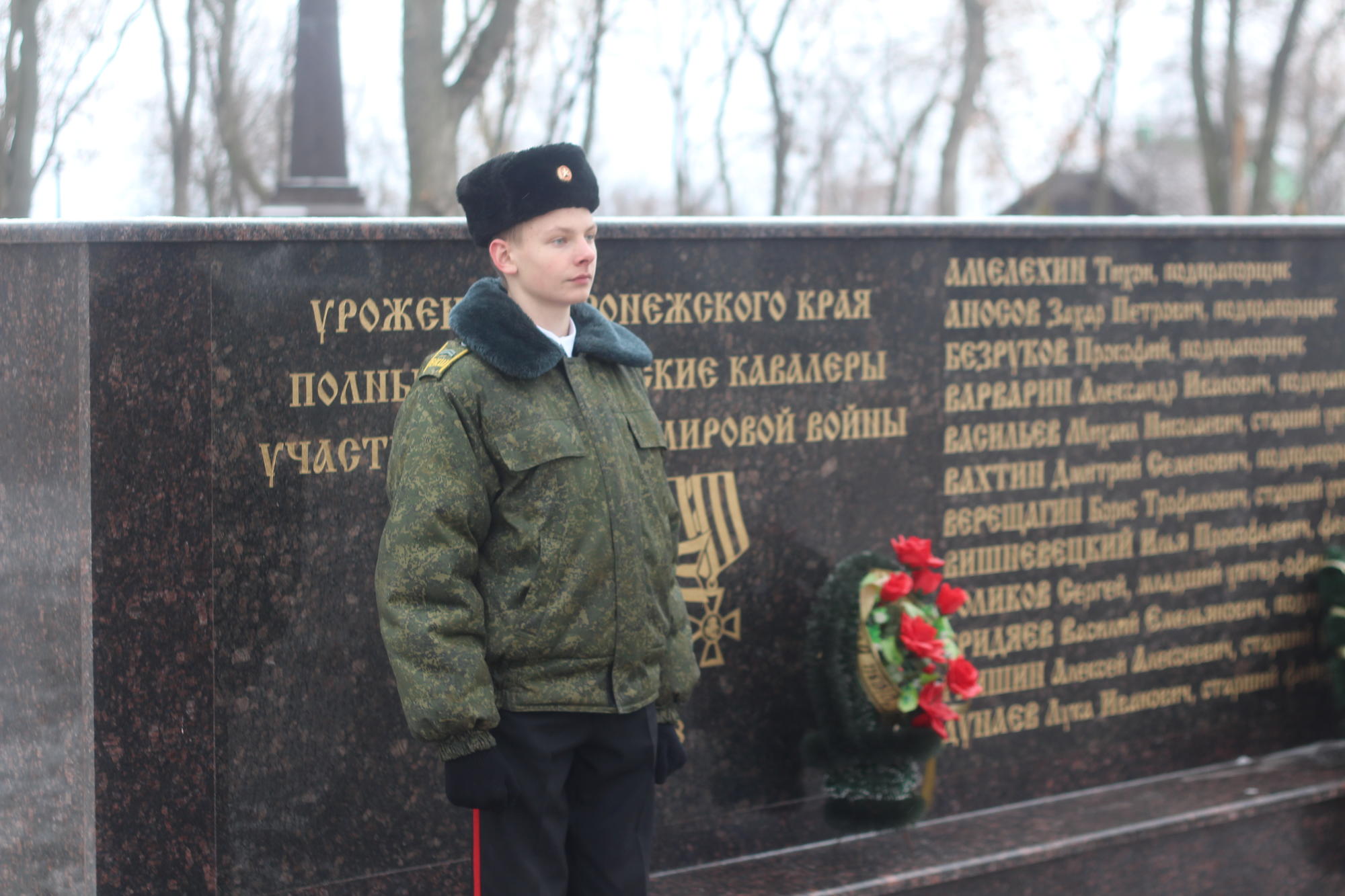 В годы I Мировой (Великой) войны сотни уроженцев Воронежской губернии удостоились высшей воинской награды – знака отличия военного ордена Св. Георгия Победоносца, а многие офицеры – военного ордена Св. Георгия. Из числа офицеров 124-го пехотного Воронежского полка выявлено 11 кавалеров ордена IV степени и 11 – золотого Георгиевского оружия. Имена 36 полных георгиевских кавалеров в год столетнего юбилея Великой войны 1914 г запечатлены на памятном пилоне Тернового кладбища.