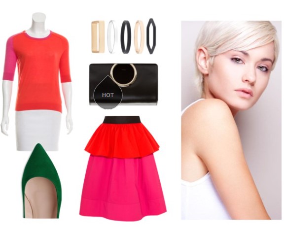 Также чтобы создать буфер между лицом и рискованным цветом я часто использую прием  «колор-блок» .  Близко с лицом должна находиться вещь/принт/вставка более лестного для вас оттенка или нейтрального черного/серого/белого.